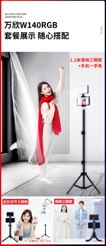 - Specification: Light + Phone Clip + Foldable Two-Section Tripod Set