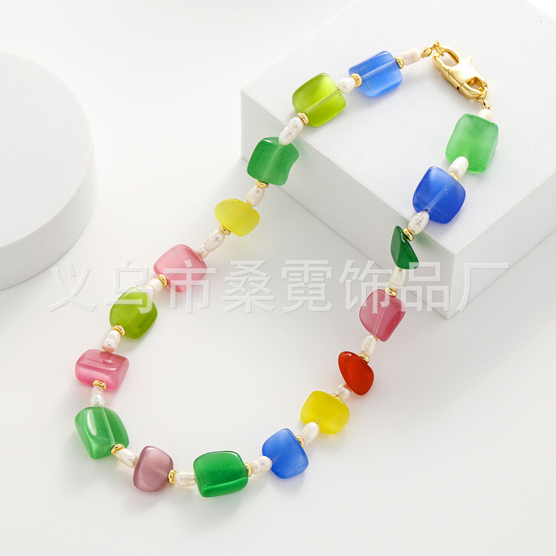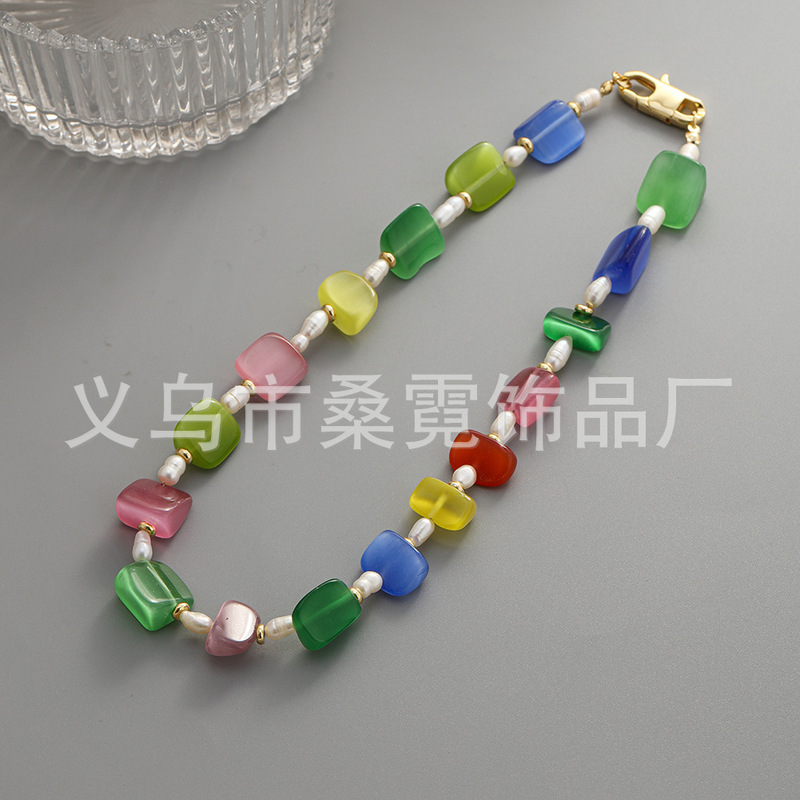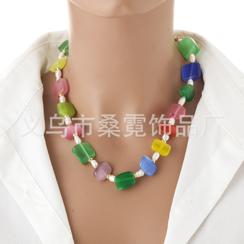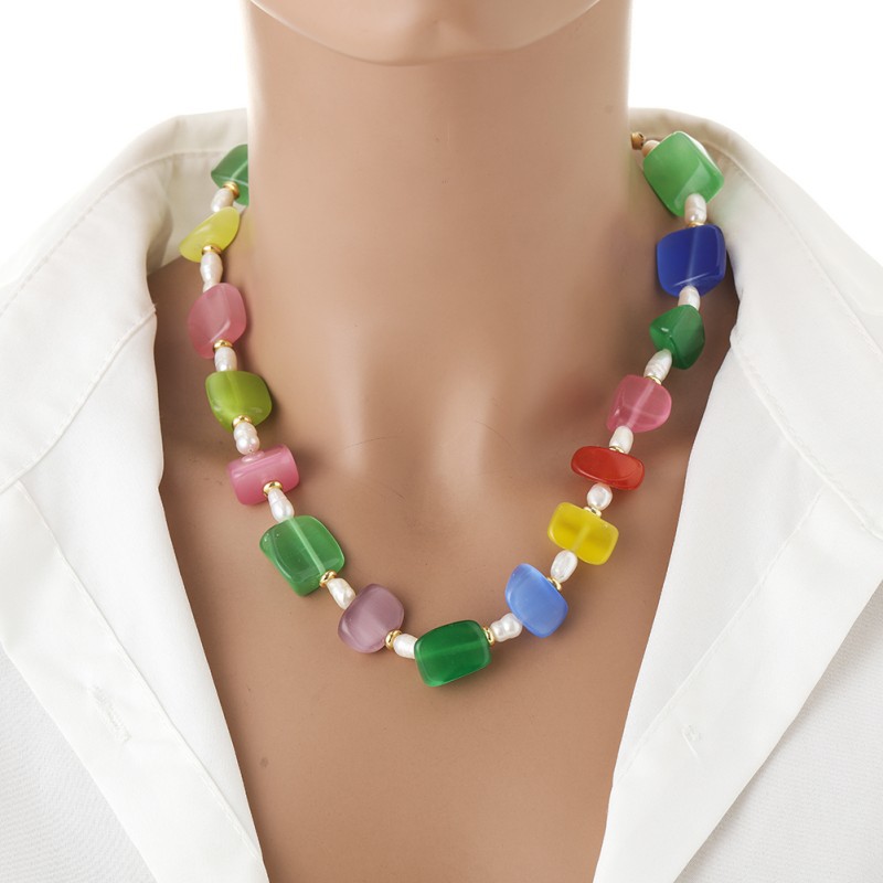 - Pendant Material: Cat's Eye + Freshwater Pearls