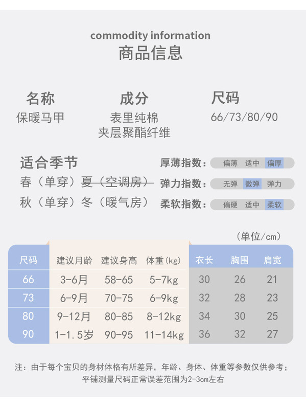 - Suitable Height: Size 80 [9-12 months, 16-24 lbs]