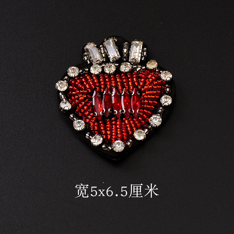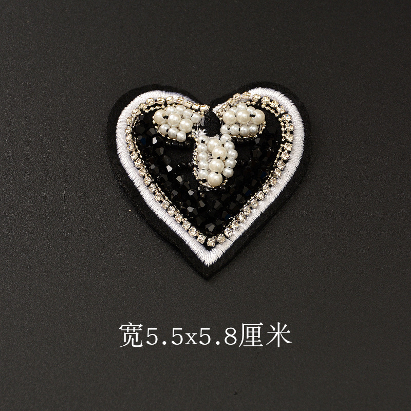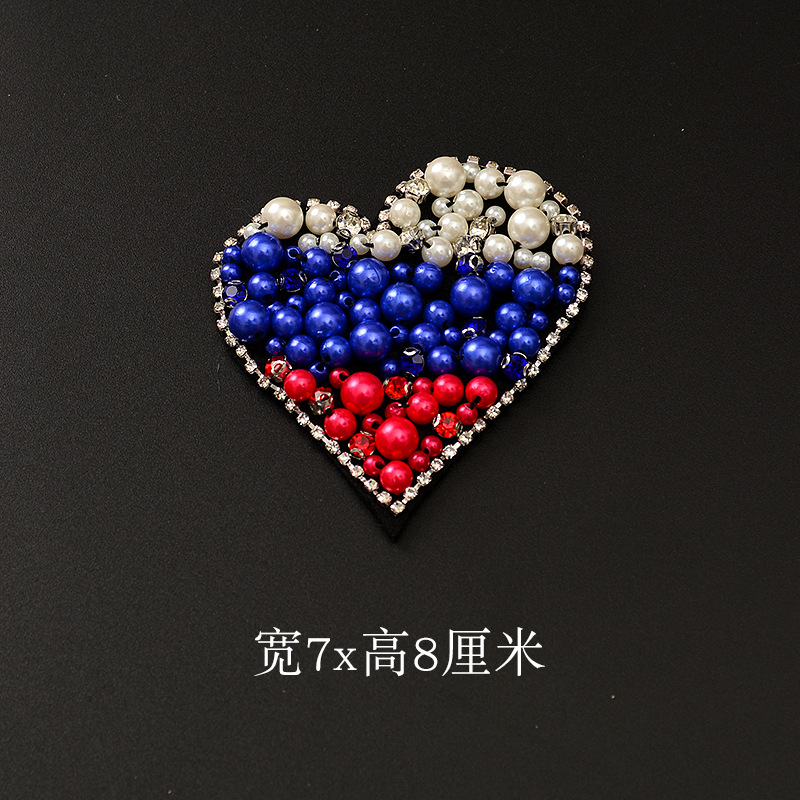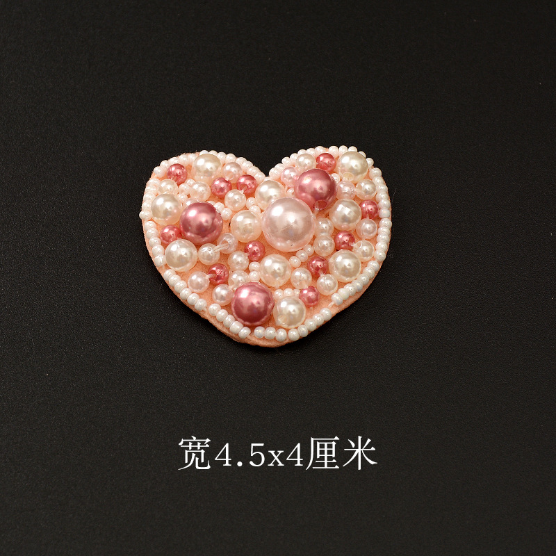 - 品名:手工釘珠浪漫心形愛心珍珠水鑽布貼