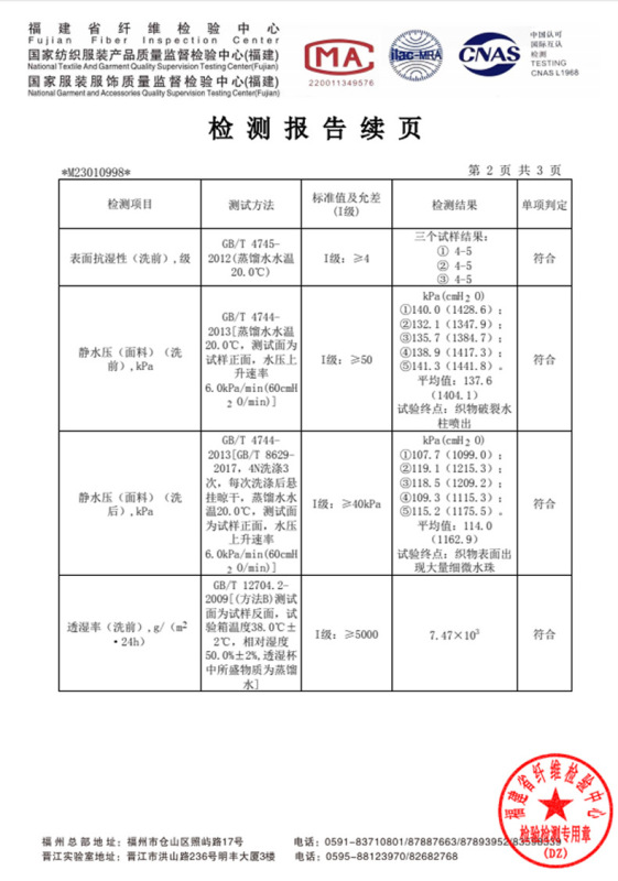 - Waterproof Breathability Index: 5000mm or Less