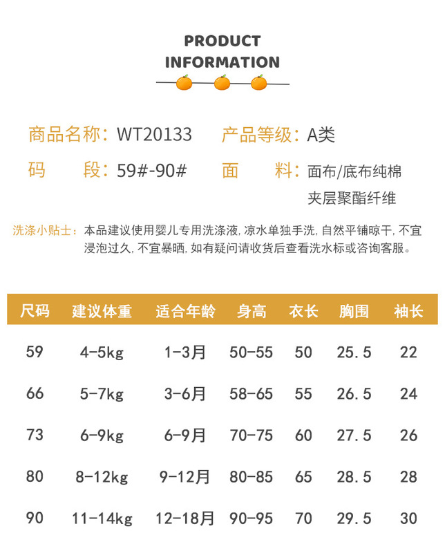- 適合身高:59碼【1-3月8-10斤】