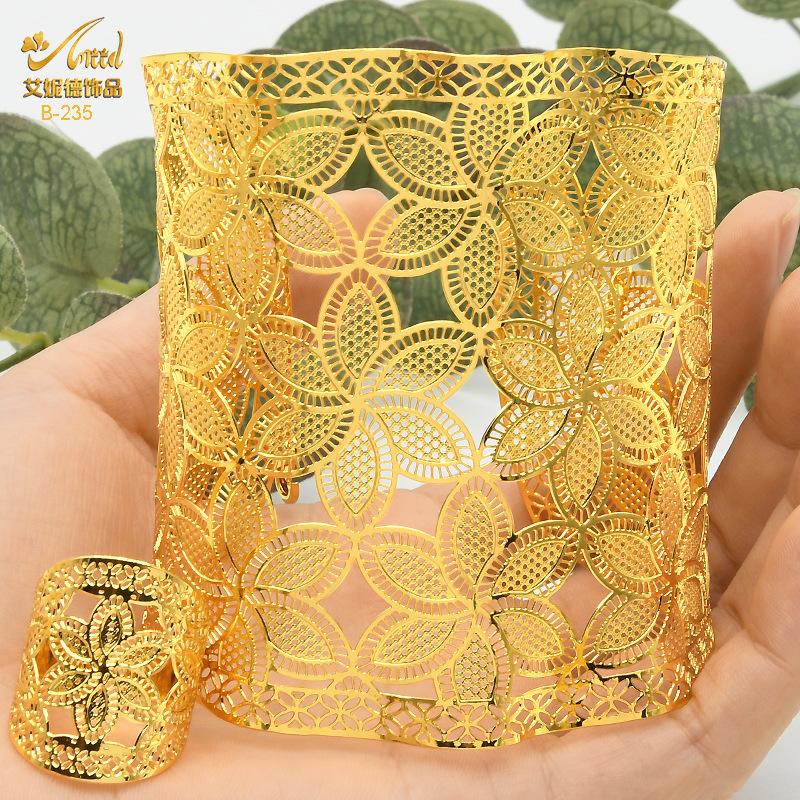 - Craft: Hollowed-out wheat leaf hand bracelet imitation gold jewelry