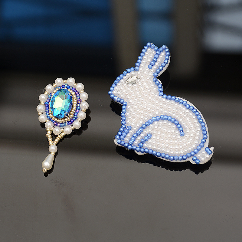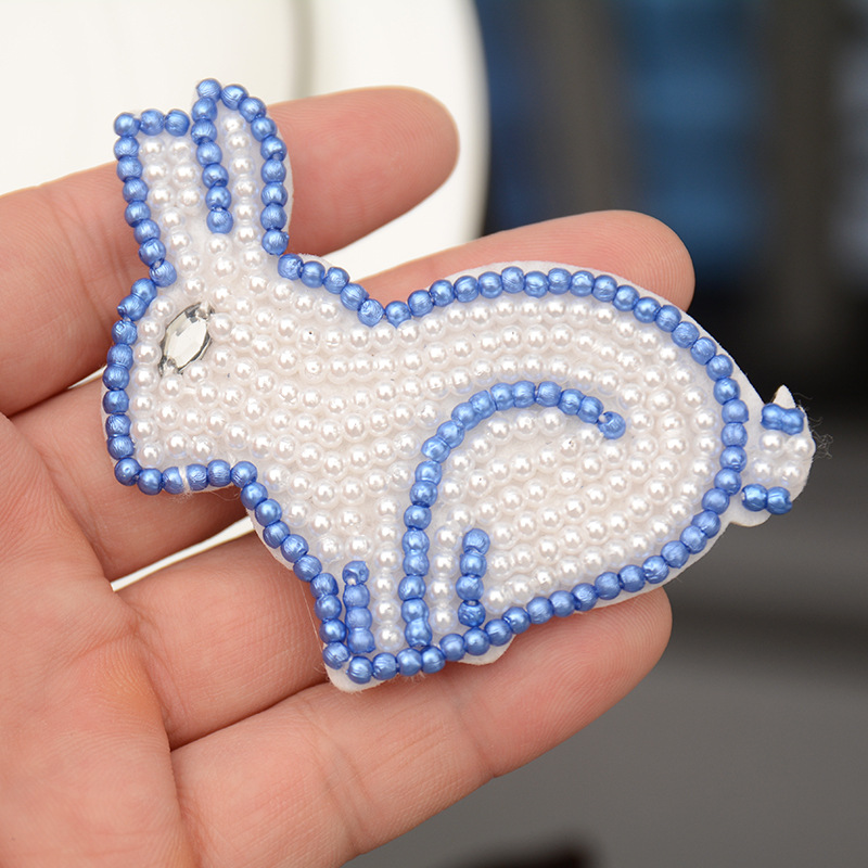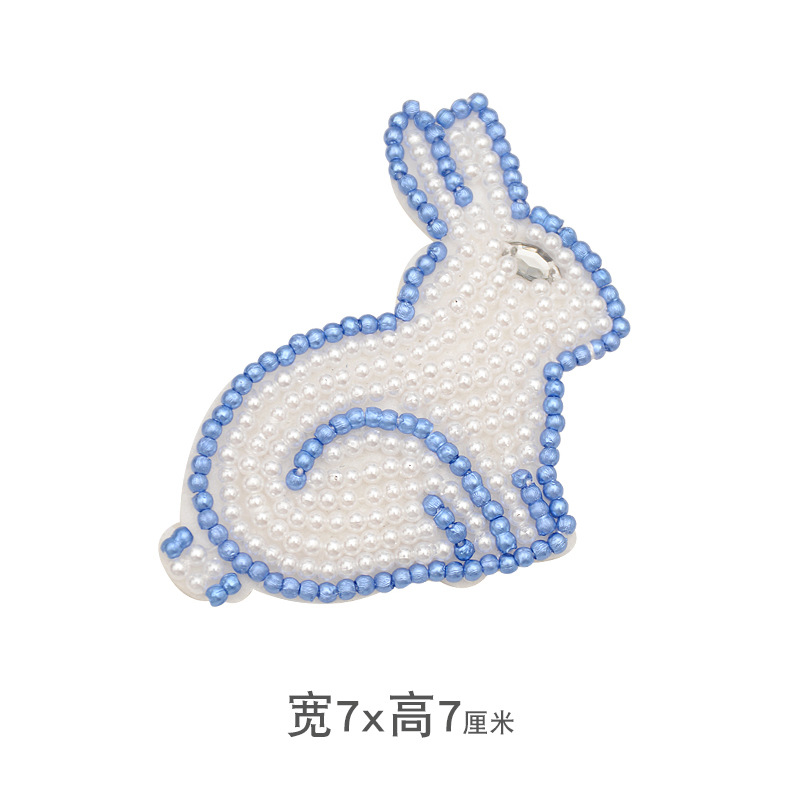 - 品名:手工釘珠珍珠兔子布貼
