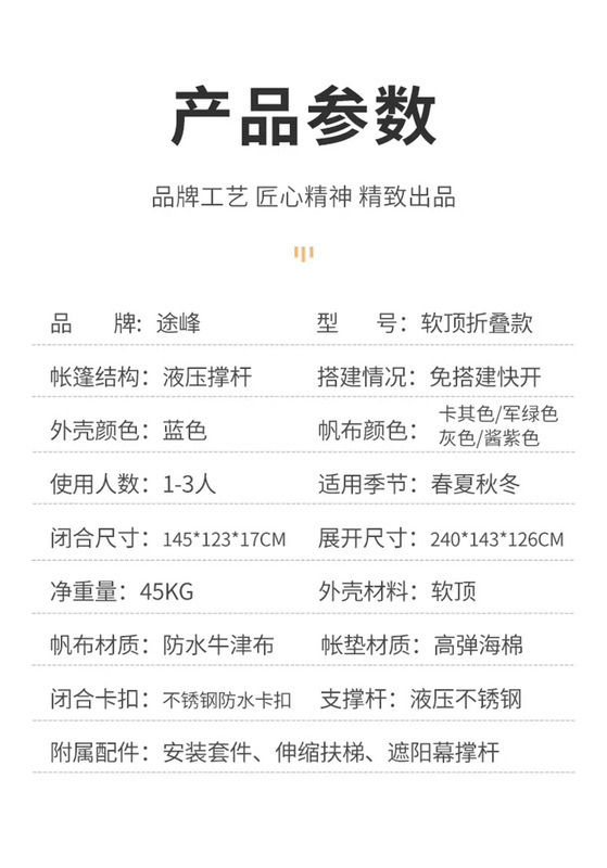 - Waterproof index of outer tent: greater than 3000MM