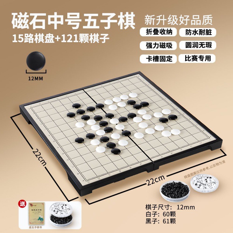 - 棋子規格:磁石中號五子棋15路121顆
