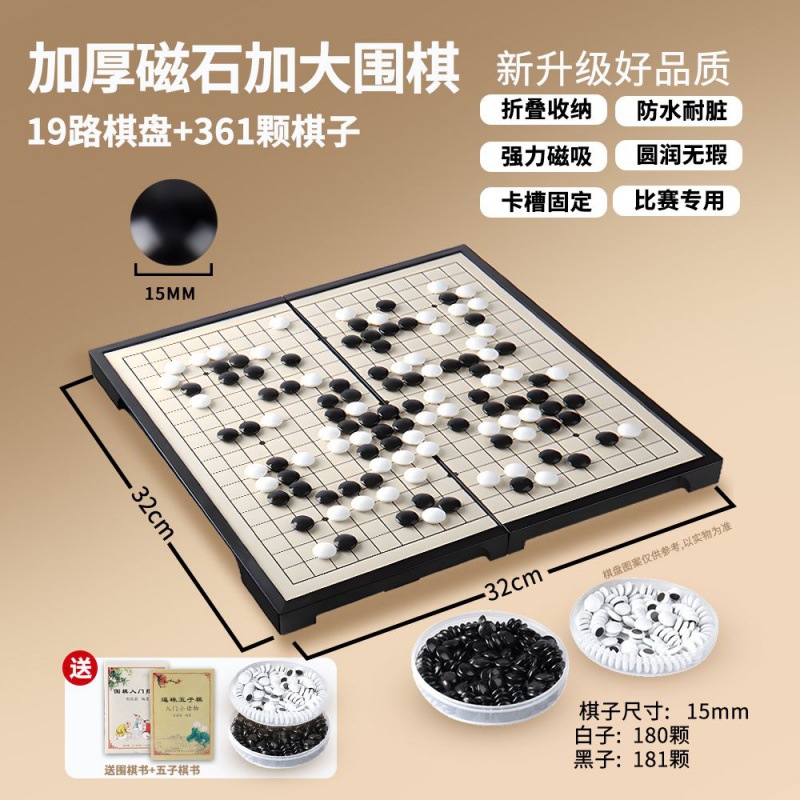 - 棋子規格:加厚磁石加大號圍棋19路361顆