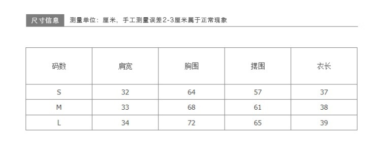 - 衣長:短款(40cm<衣長≤50cm)