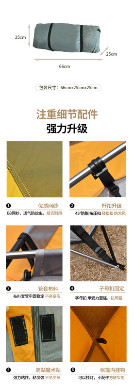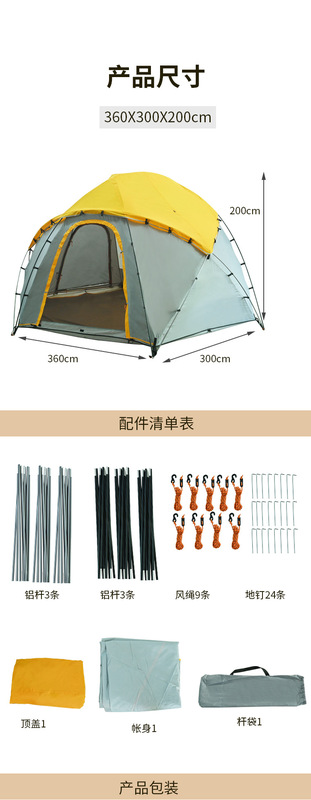 - Tent structure: Double-layer tent