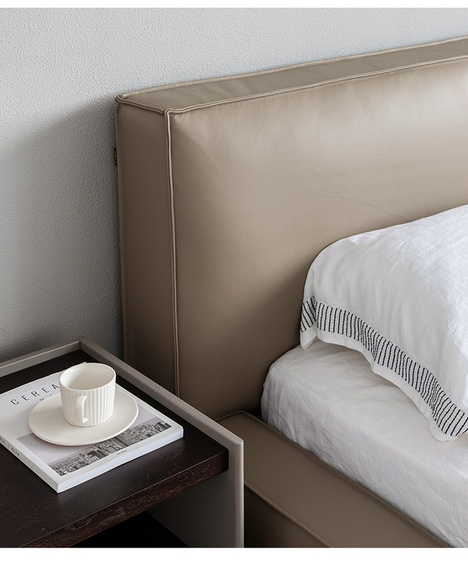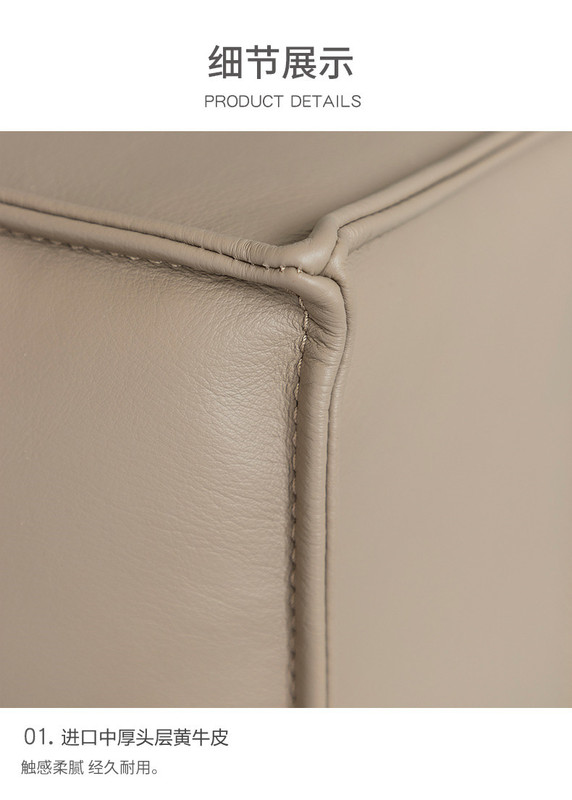 - Styling Details: Leather拼接