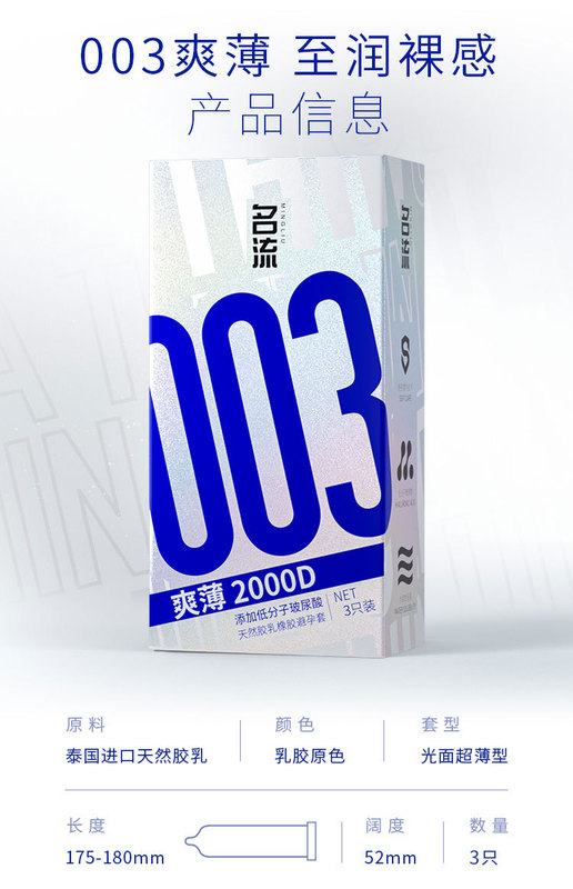 - 產品名稱:名流003系列爽薄2000D玻尿酸