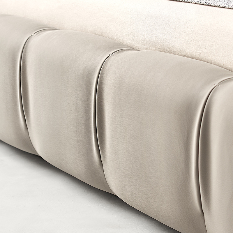 - 款式細節:皮革拼接