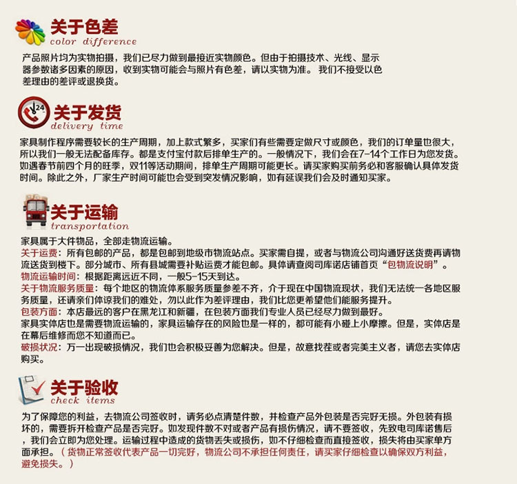 Delivery time: For products in stock, they will be shipped within 3 working days (excluding holidays) after you place your order and make payment. You will receive our notification after shipment.