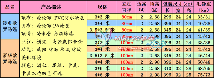 - Specification: Double Drop 4x4 Roman Tent