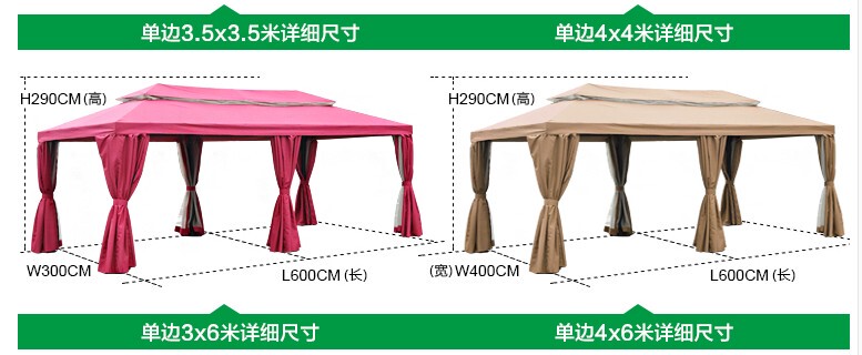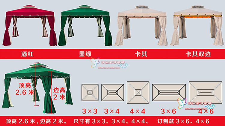 - Specification: 3x3M Khaki (with double curtains)
