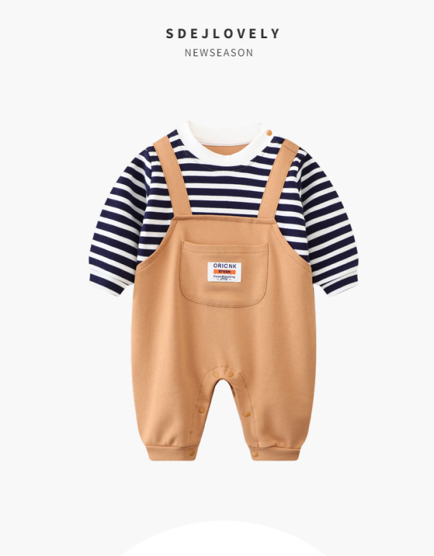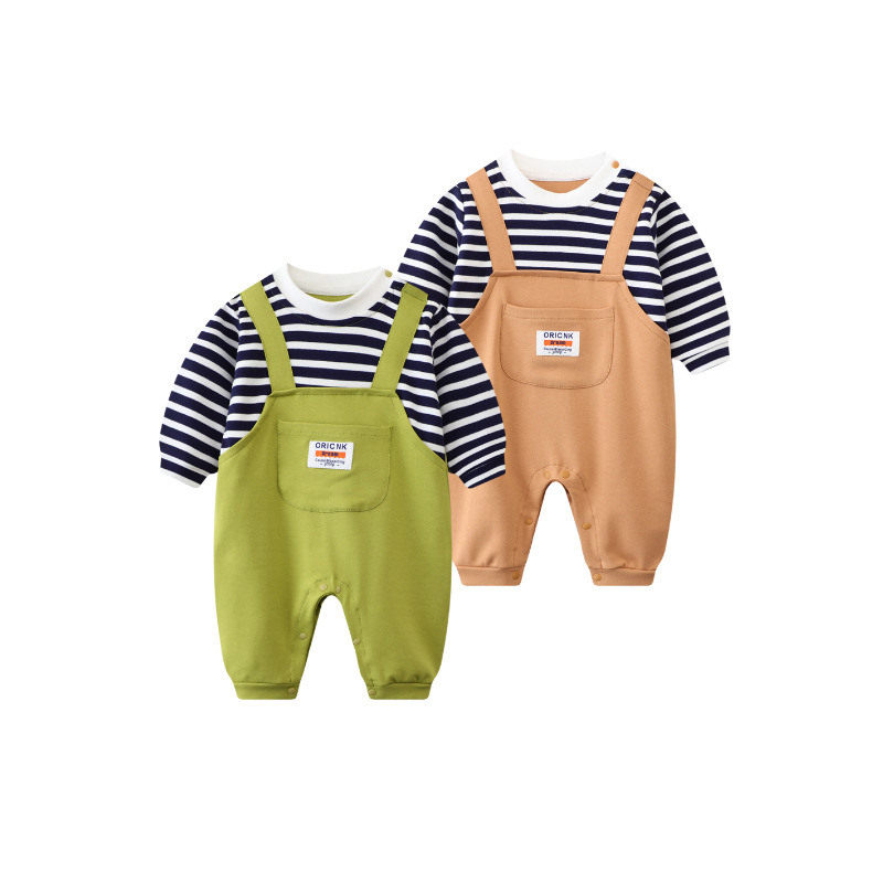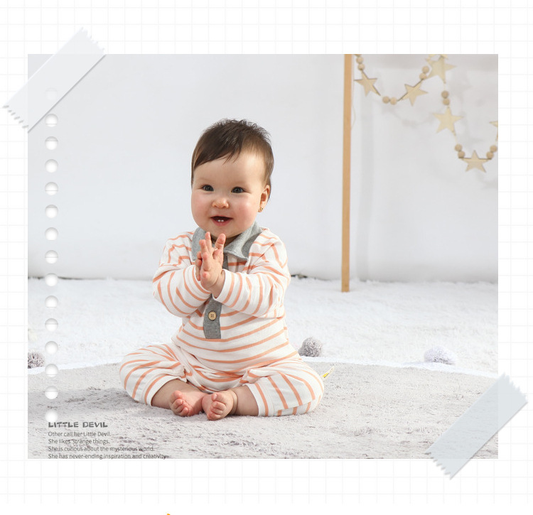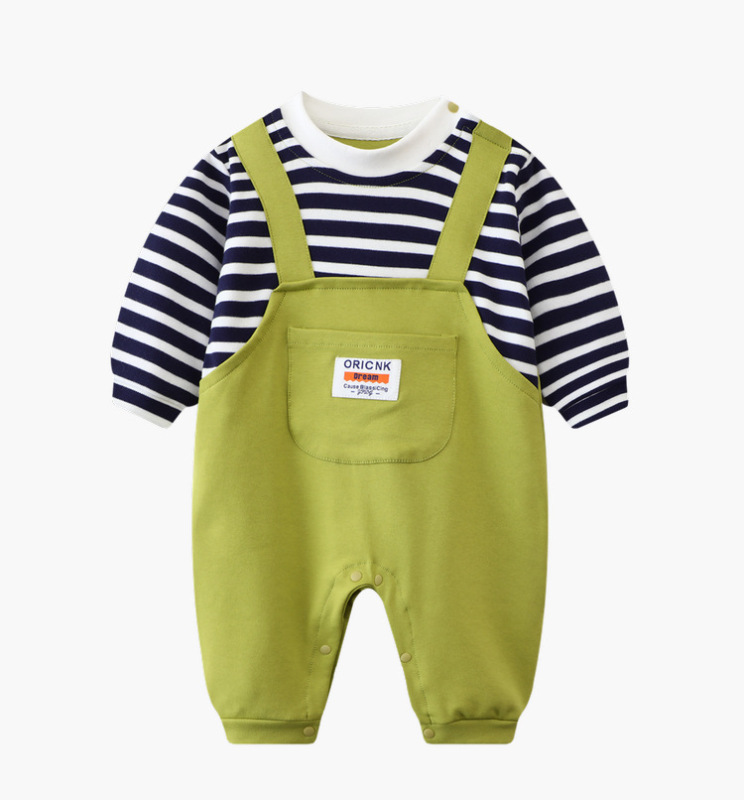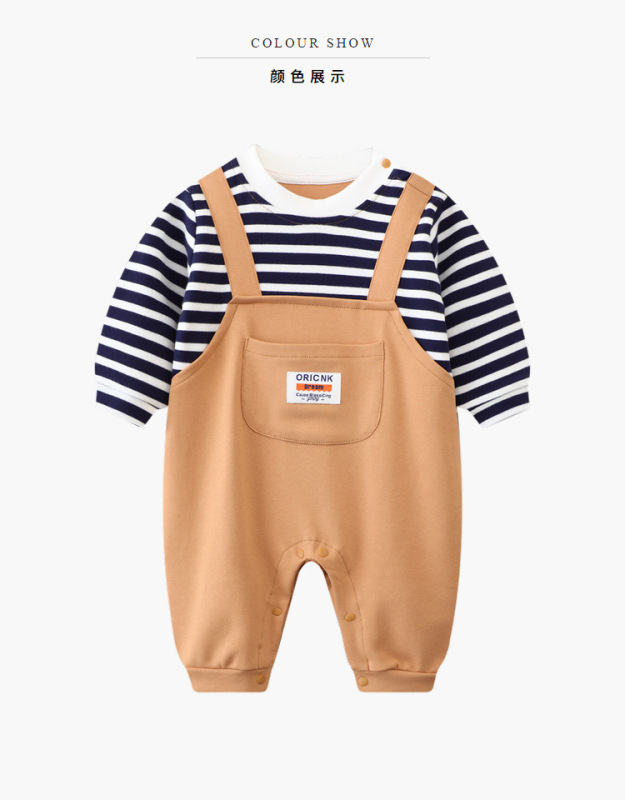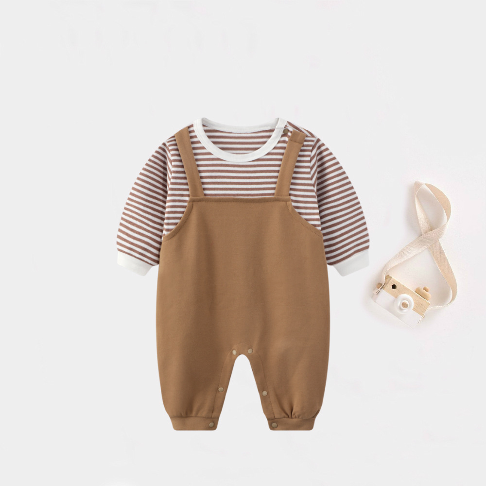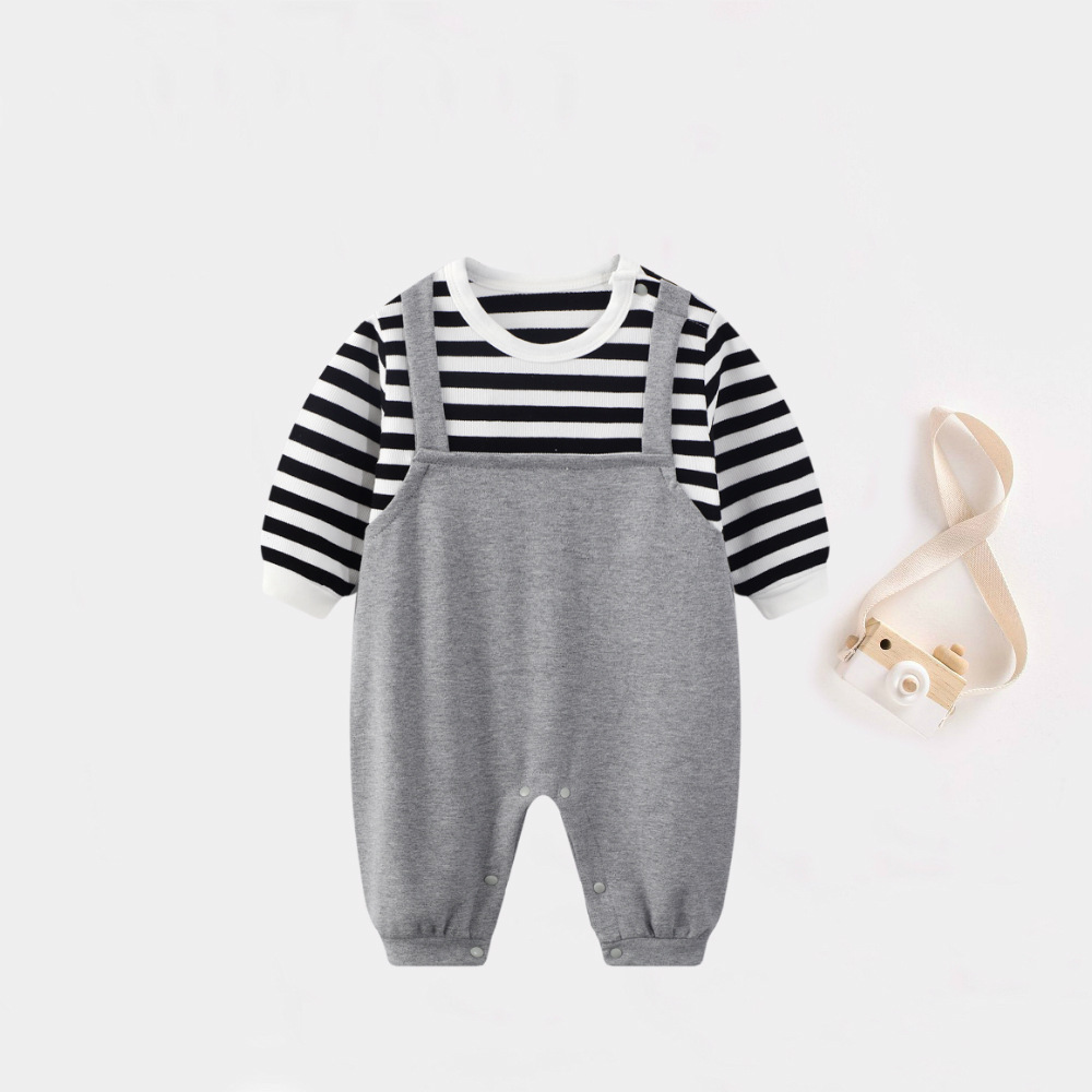 - Spring and Autumn Baby Bodysuit: Ins Inspired Striped Belt Korean Version Two-Piece Long-Sleeved Baby Climbing Suit Casual Outing Clothes