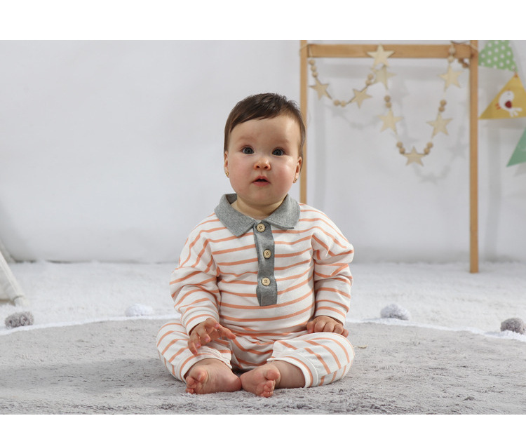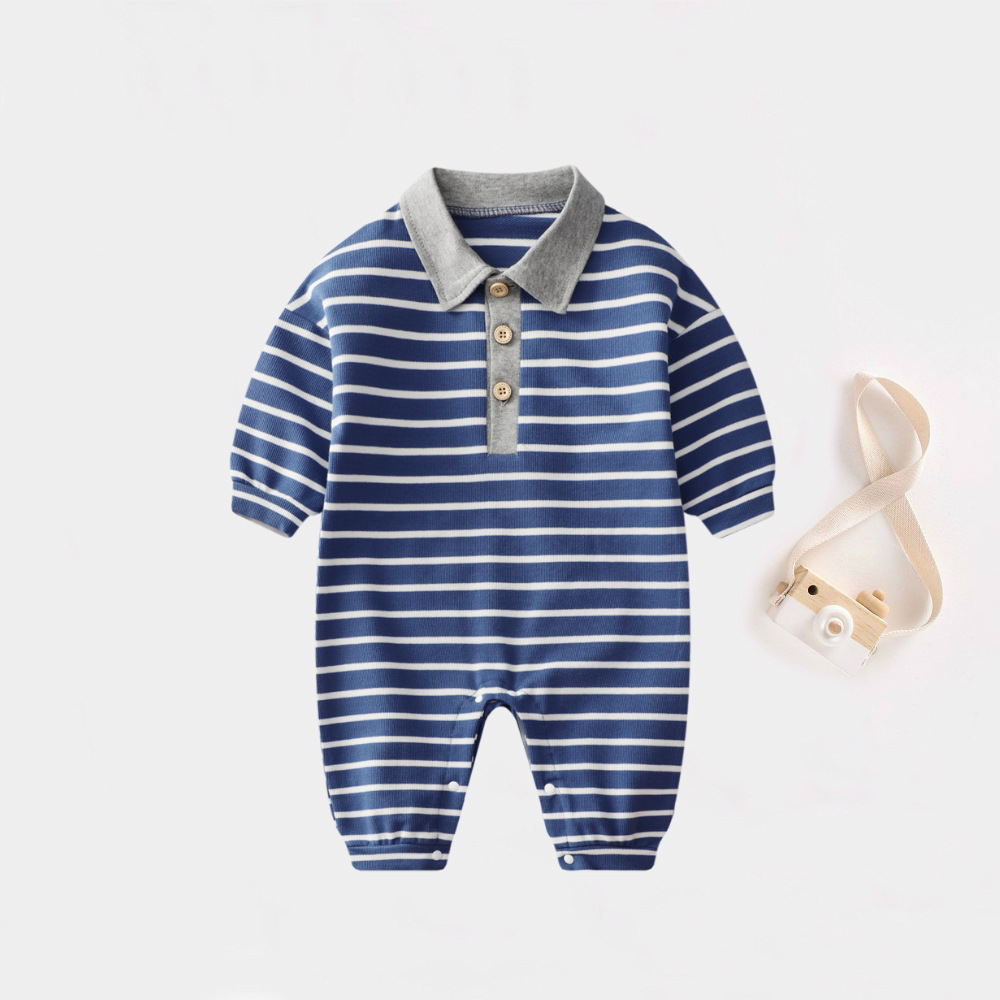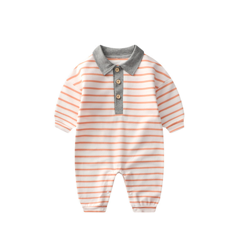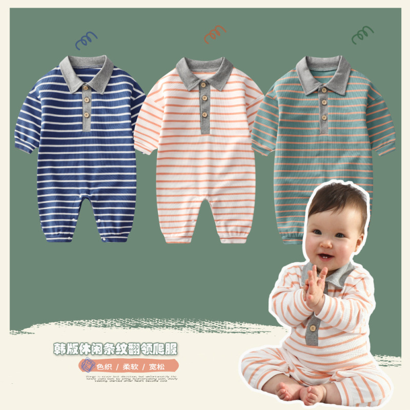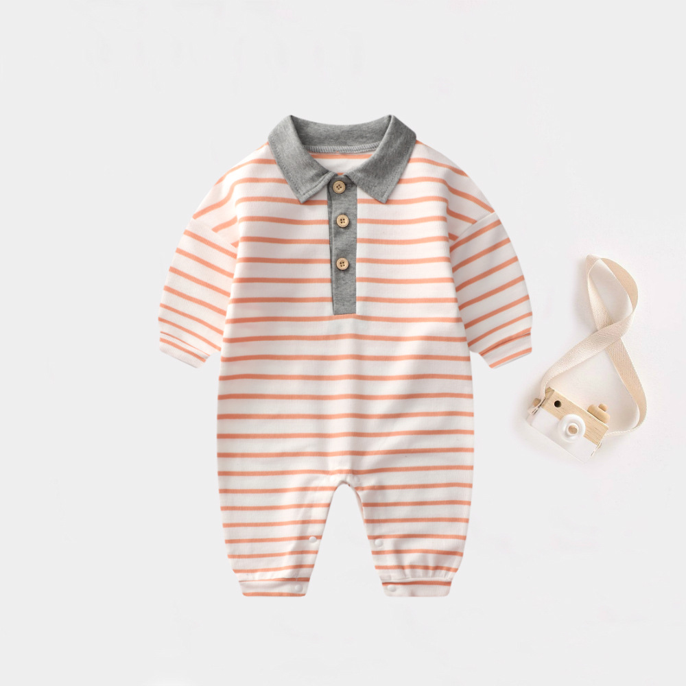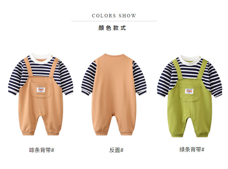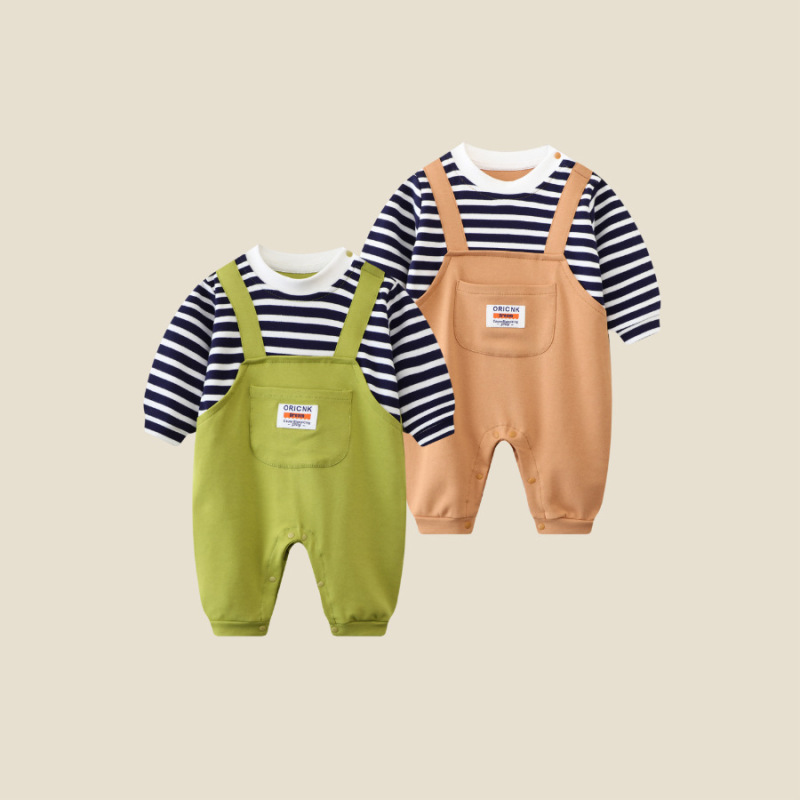 - Spring and Autumn Baby Bodysuit: Ins Inspired Striped Belt Korean Version Two-Piece Long-Sleeved Baby Climbing Suit Casual Outing Clothes