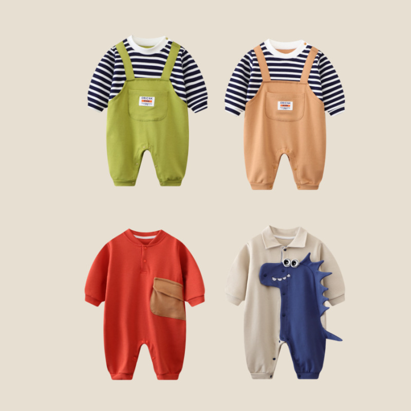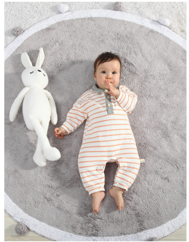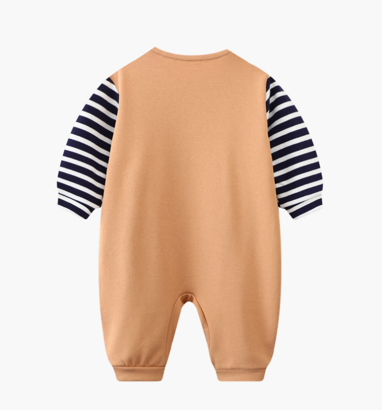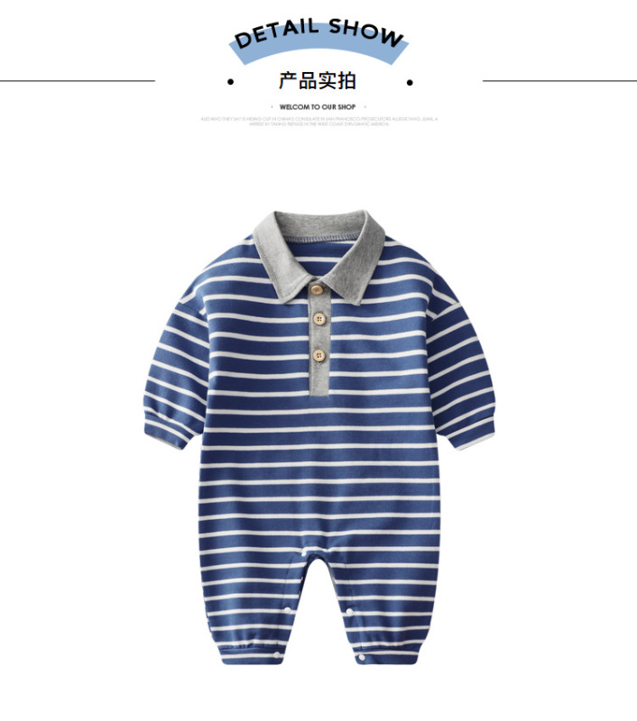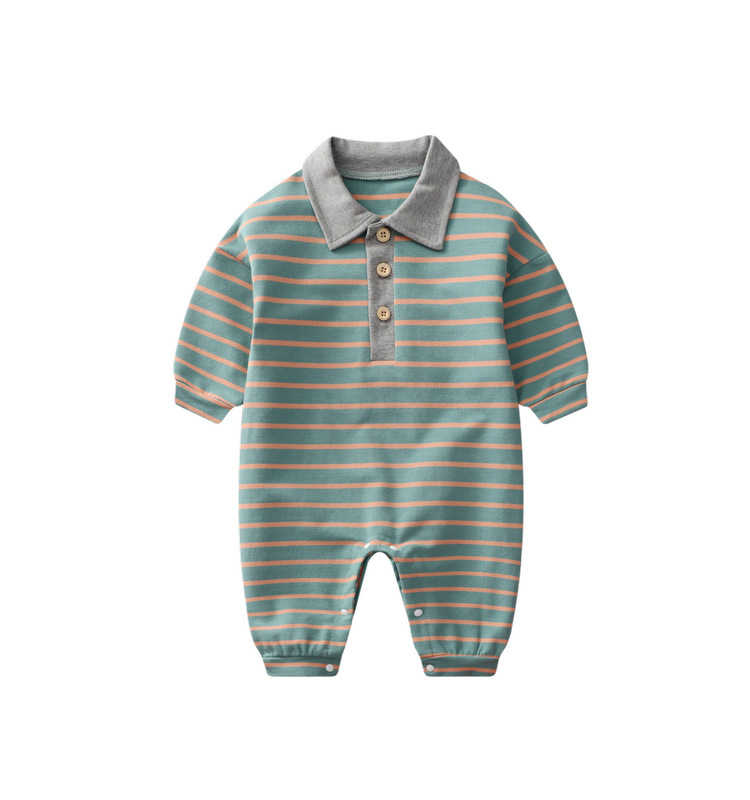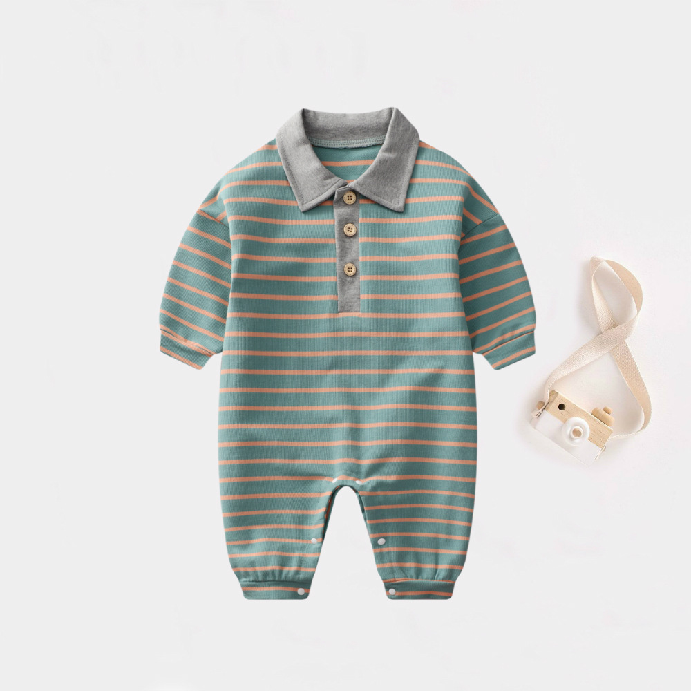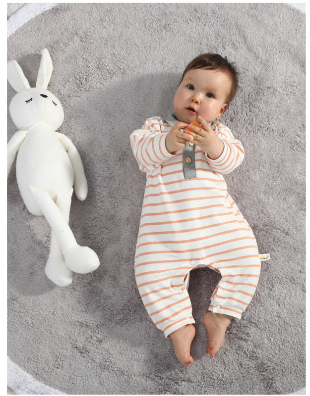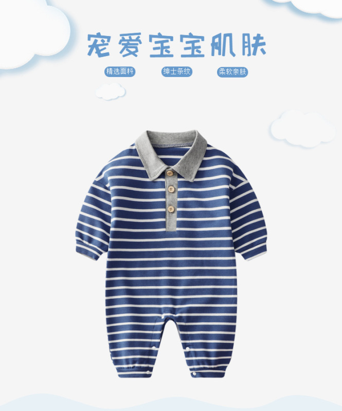 - Spring and Autumn Baby Bodysuit: Ins Inspired Striped Belt Korean Version Two-Piece Long-Sleeved Baby Climbing Suit Casual Outing Clothes