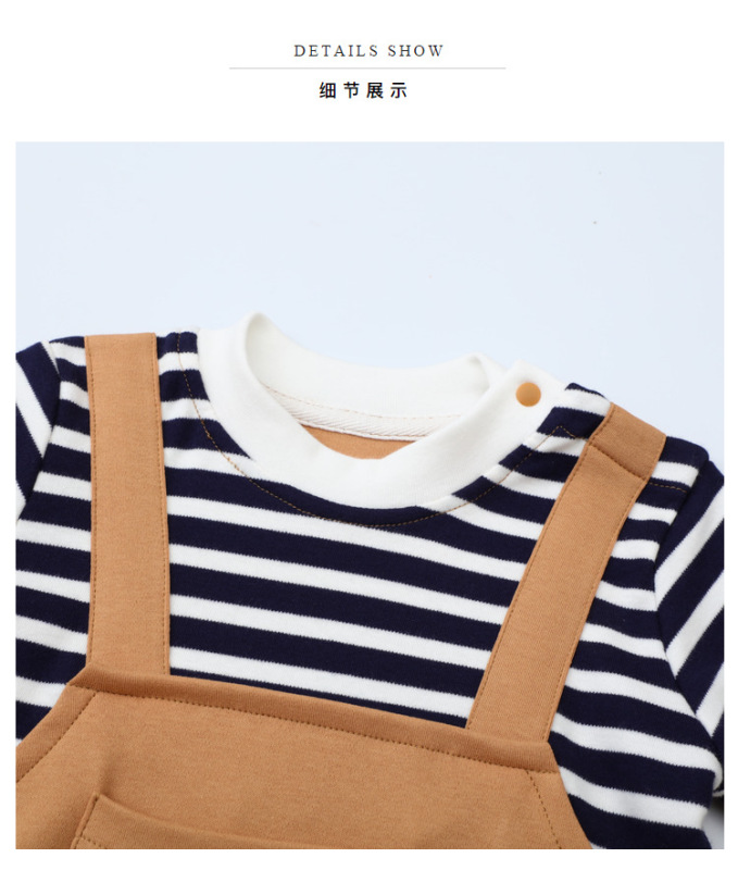 - Baby Bodysuit Two-Piece: Ins Inspired Striped Belt Korean Version Two-Piece Long-Sleeved Baby Climbing Suit Casual Outing Clothes
