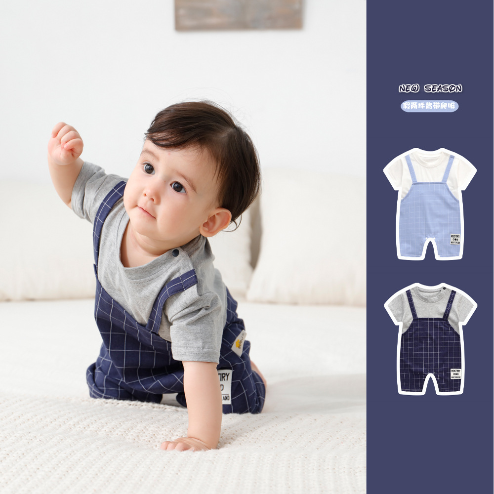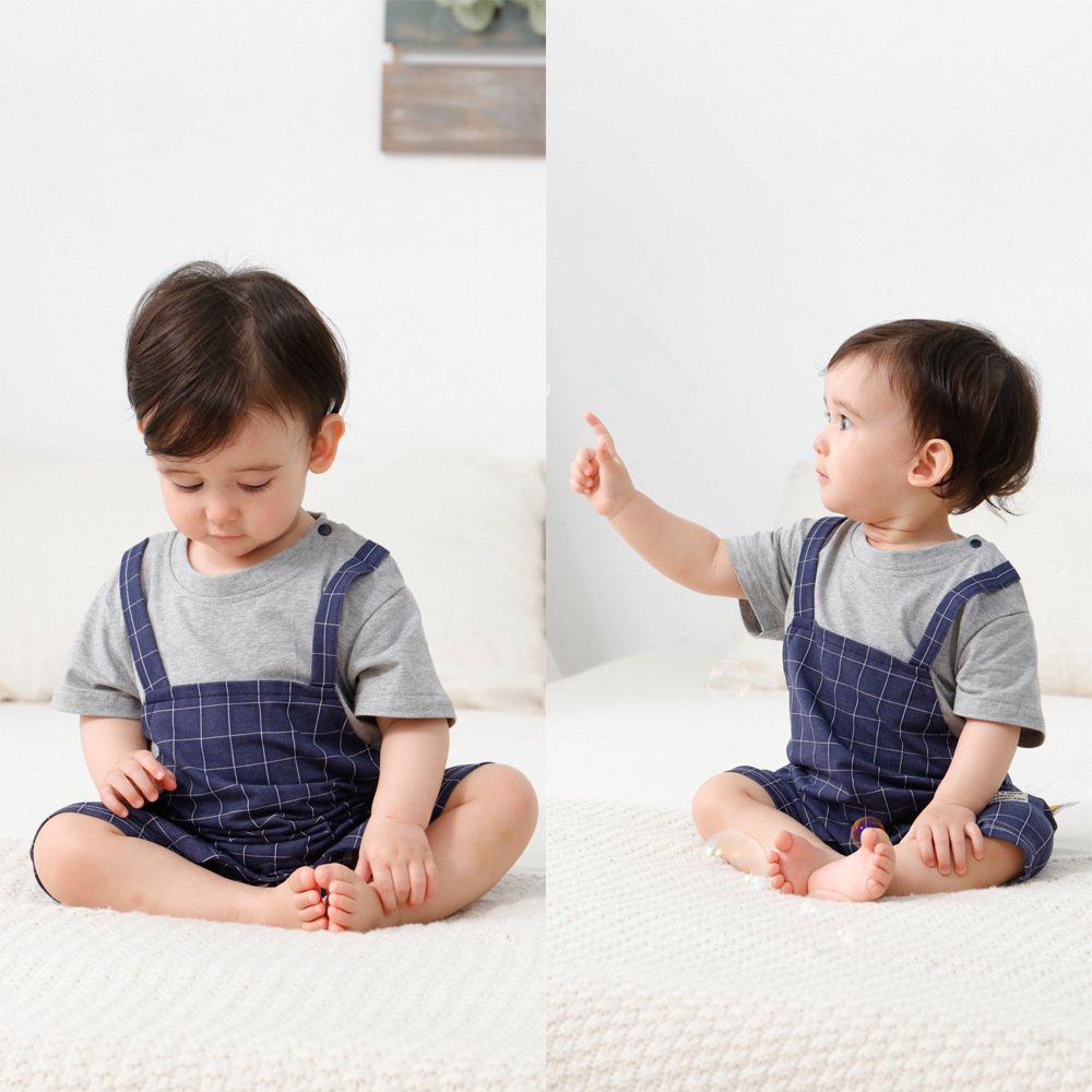- 嬰兒衣服:嬰兒哈背帶紳士格子