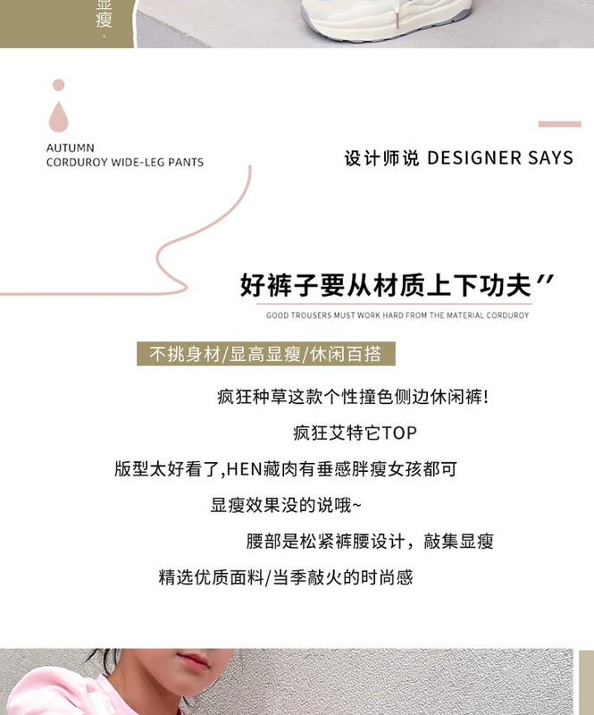 - 褲門襟:皮筋腰帶