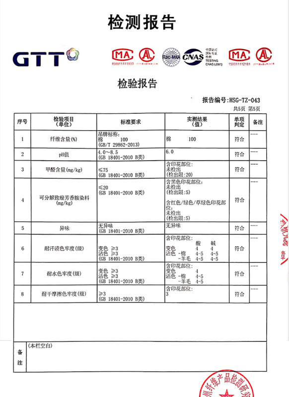 - 主面料成分含量:100