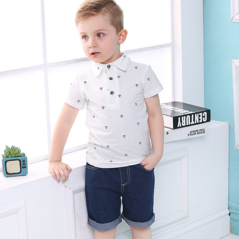 - 男童套裝:短袖上衣牛仔短褲套裝