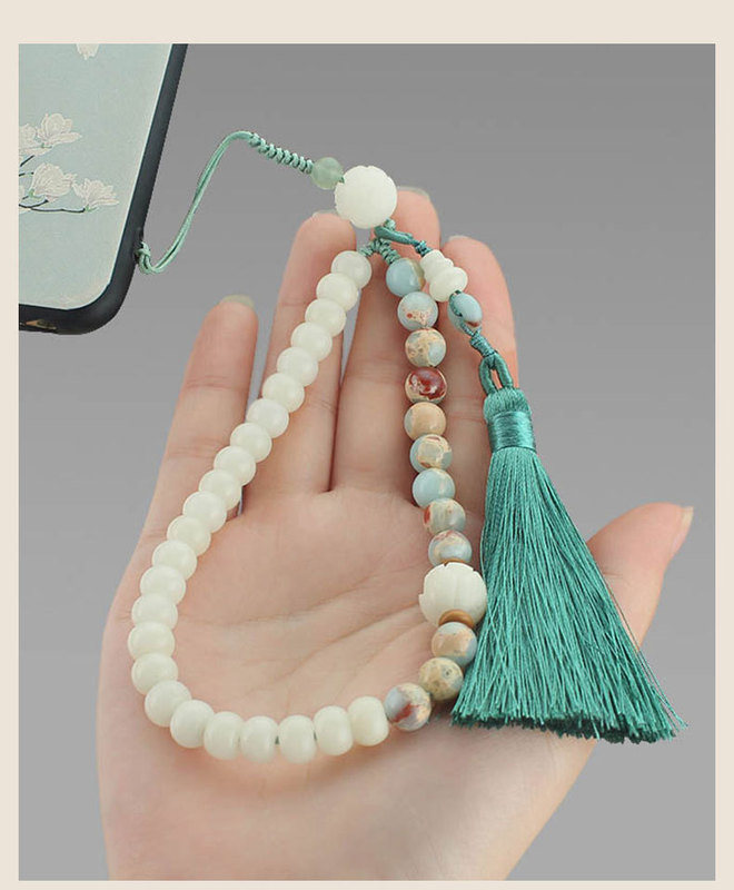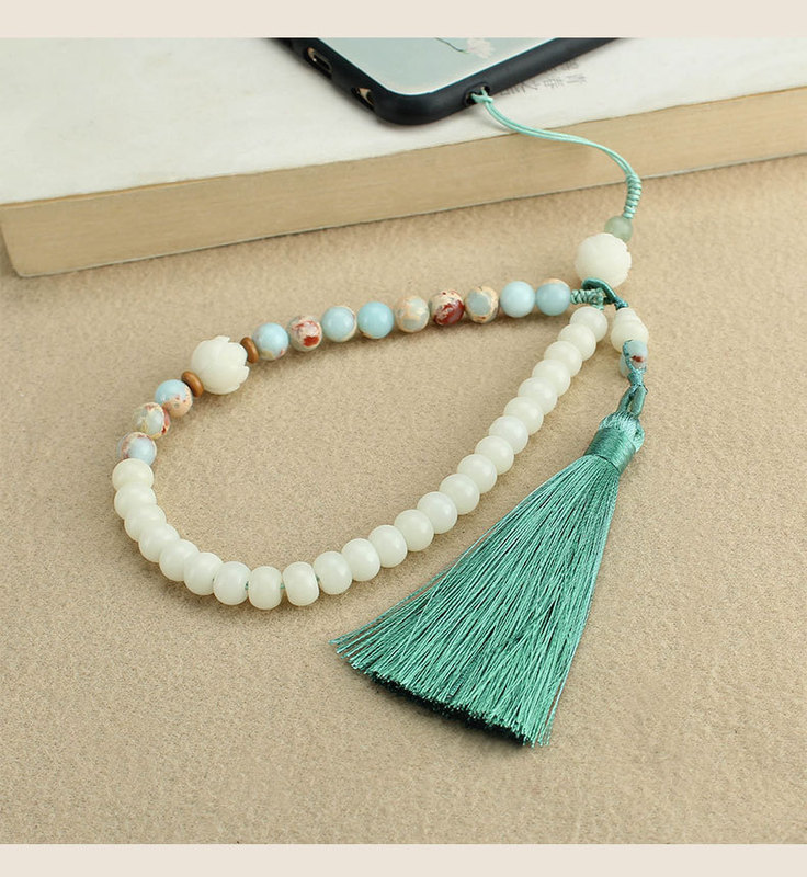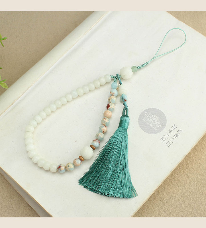 - 規格支持圖片上傳:619-1#壽山石流蘇短款手機鏈