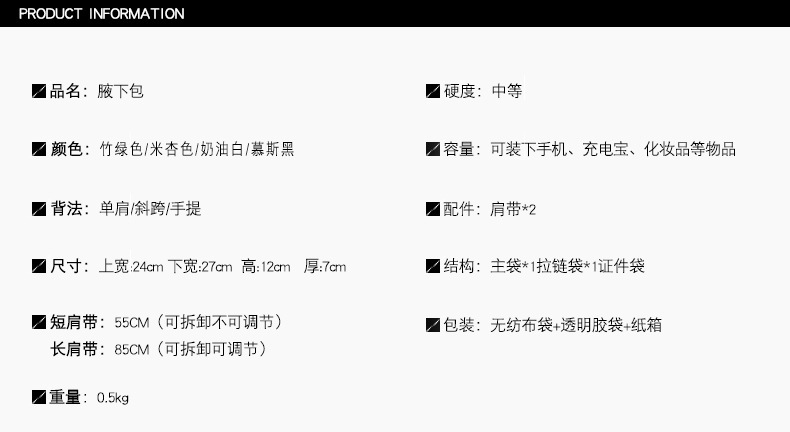 - Bag shape: horizontal square shape