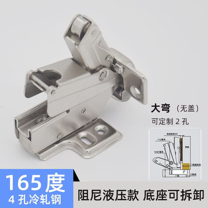 - Specification: 165-degree Standard Fixed Four-Hole Hinge Large Bend