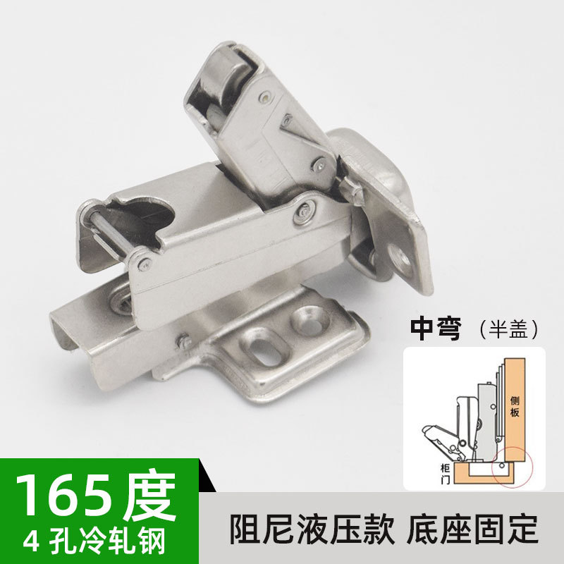 - Specification: 165-degree Standard Fixed Four-Hole Hinge Medium Bend
