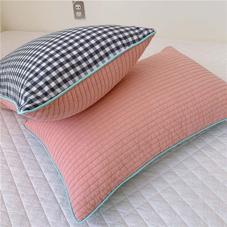- Pattern: South Korean embroidered adult pillowcase--Grid pink
