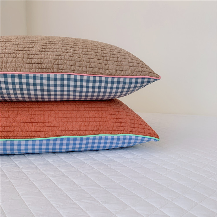 - Pattern: South Korean embroidered adult pillowcase--Grid orange-red