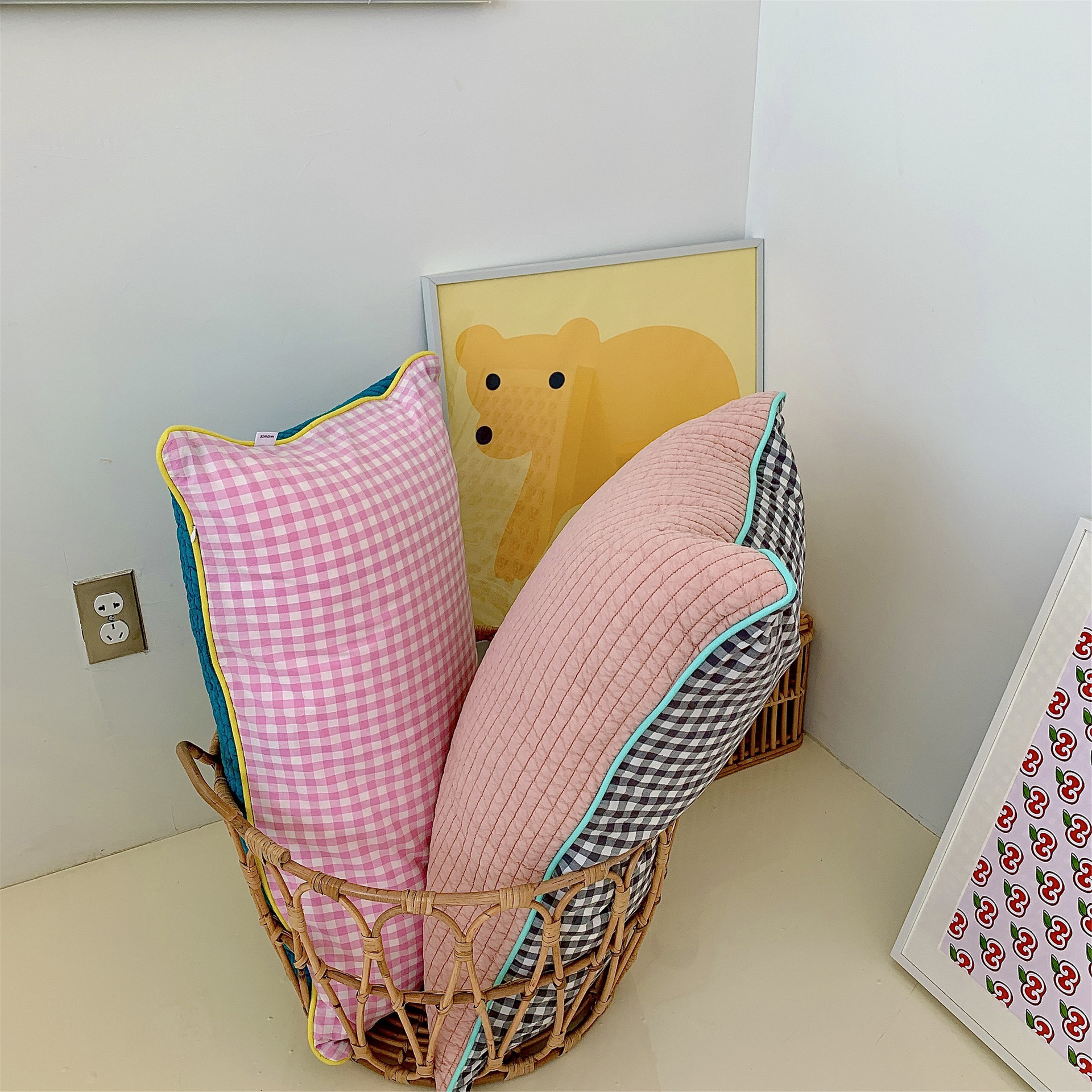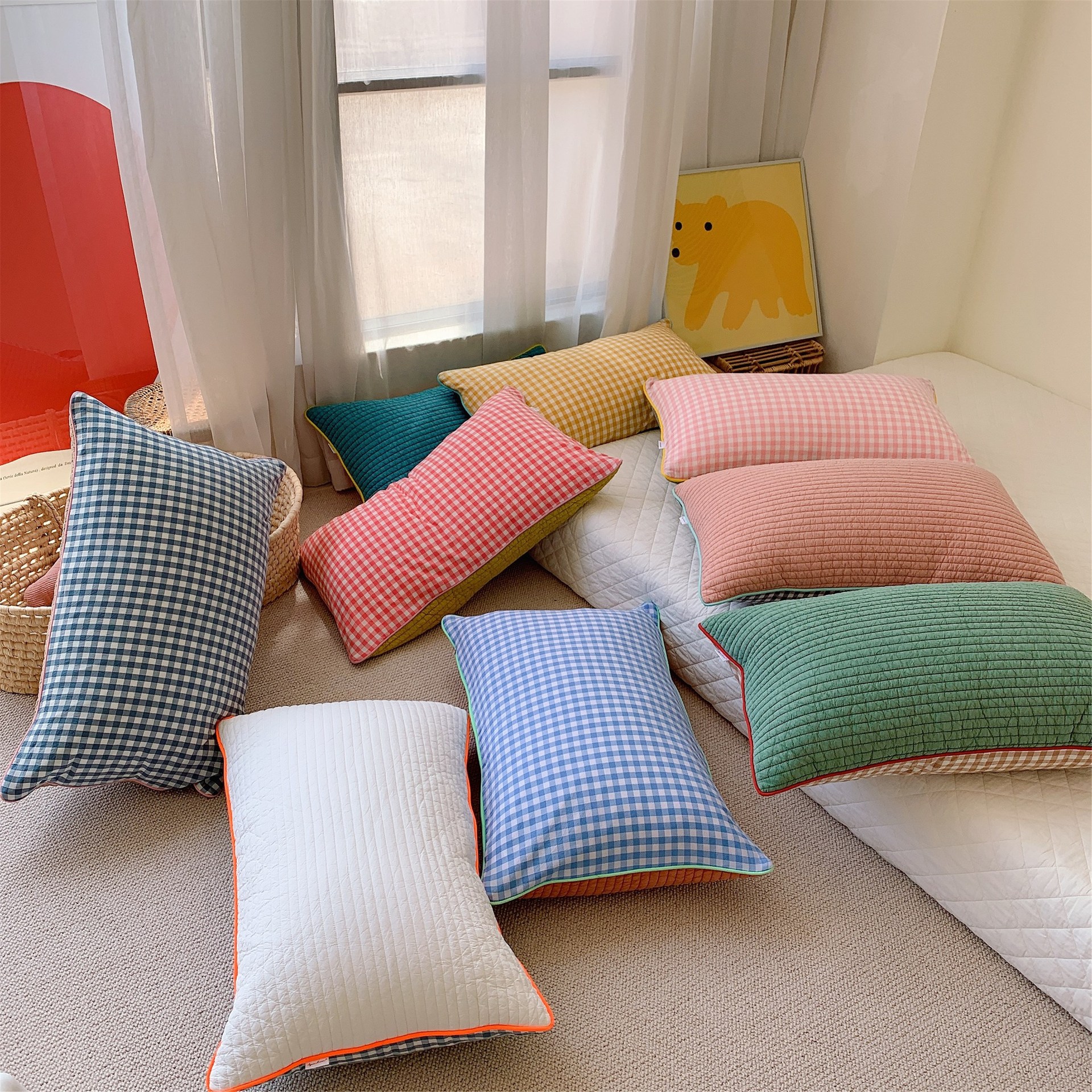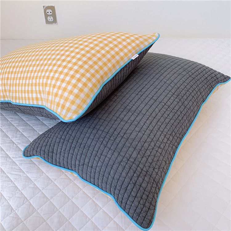 - Pattern: South Korean embroidered adult pillowcase--Grid yellow