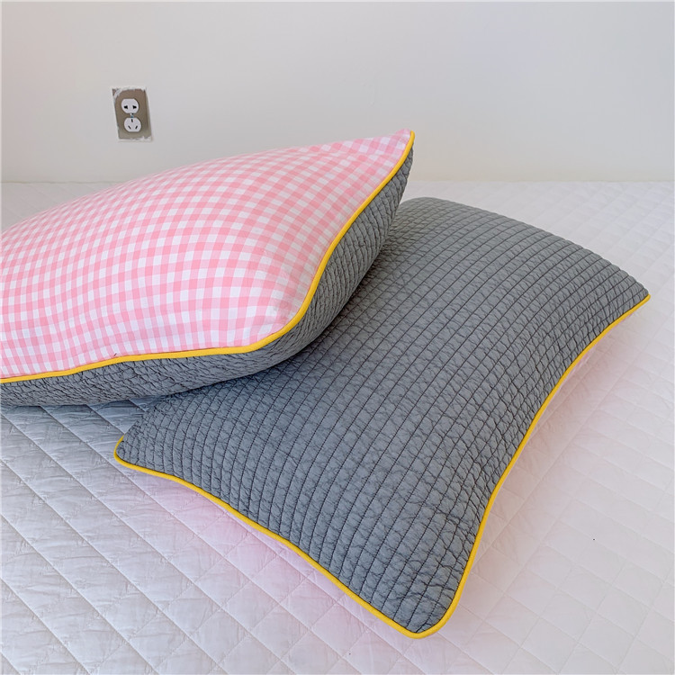 - Pattern: South Korean embroidered adult pillowcase--Grid light gray