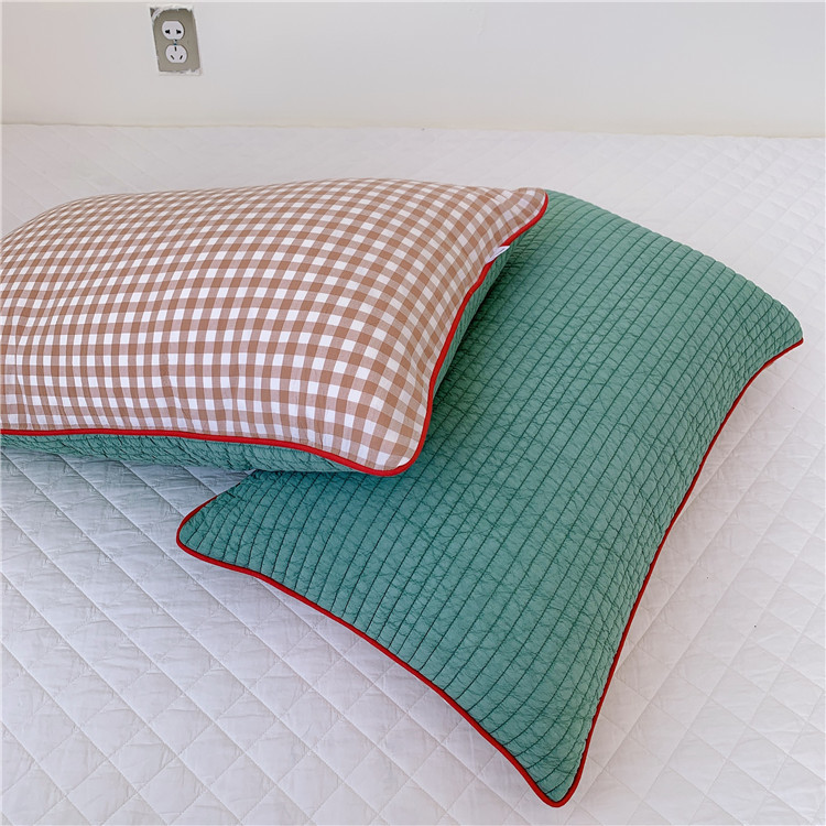 - Pattern: South Korean embroidered adult pillowcase--Grid green