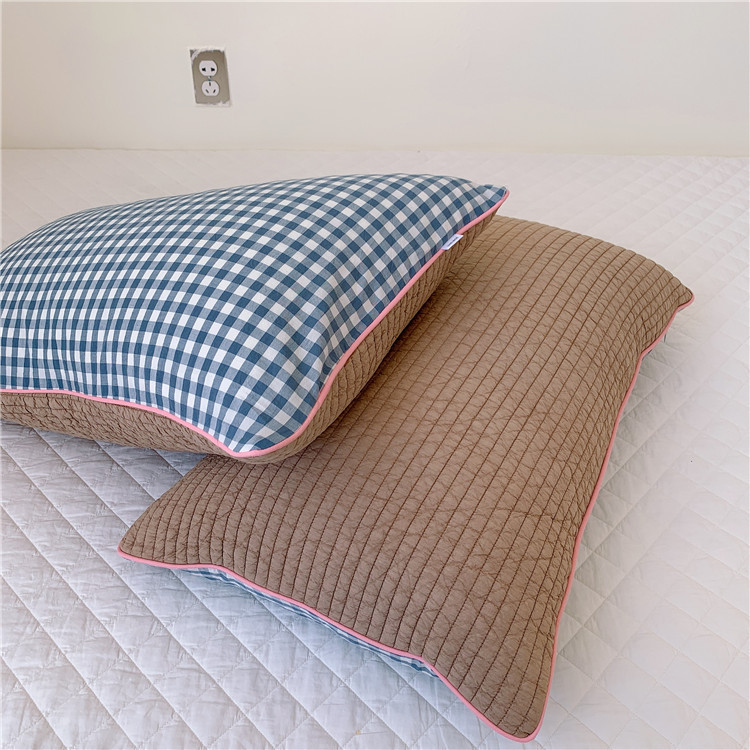 - Pattern: South Korean embroidered adult pillowcase--Grid lake blue