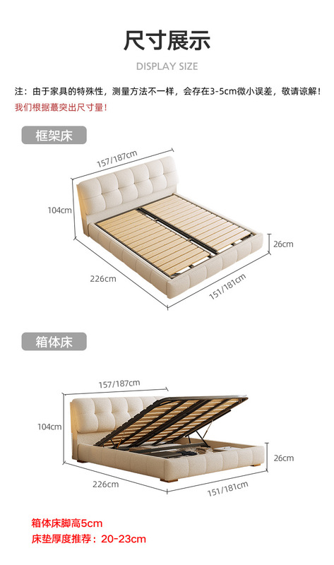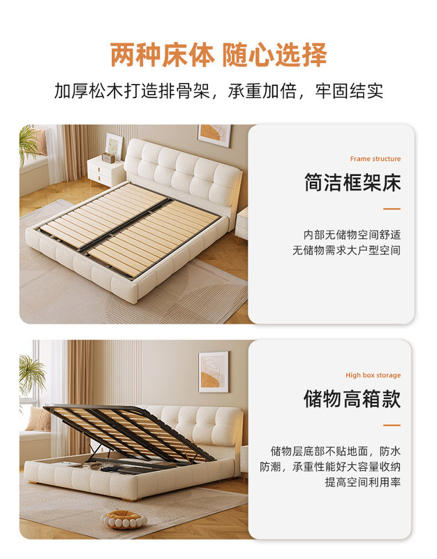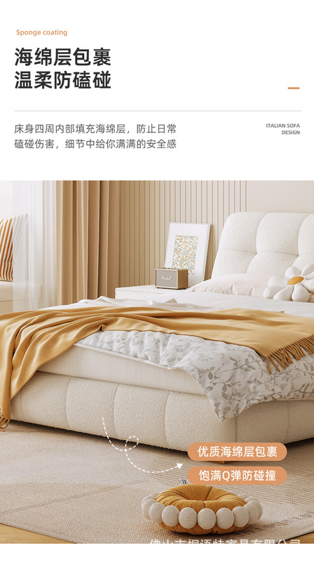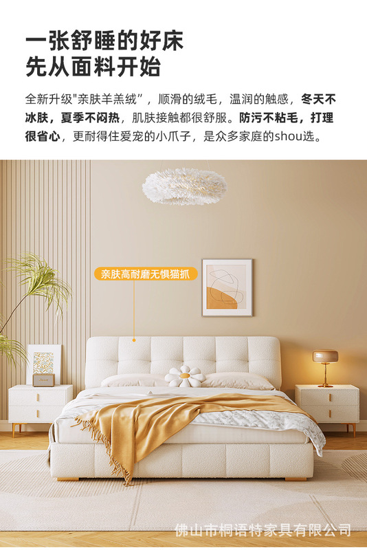 - Model: BC083 Lamb Wool Fabric Bed 1