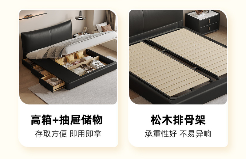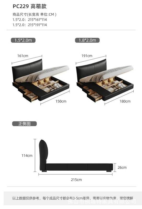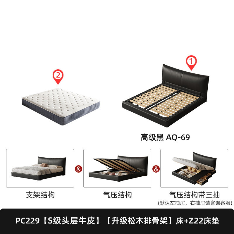 - Model: PC229 Drawer Storage Leather Bed