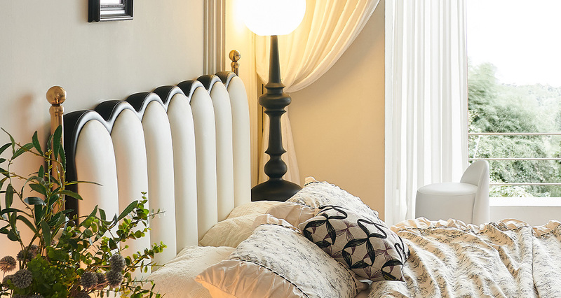 - 款式細節:波浪床頭造型