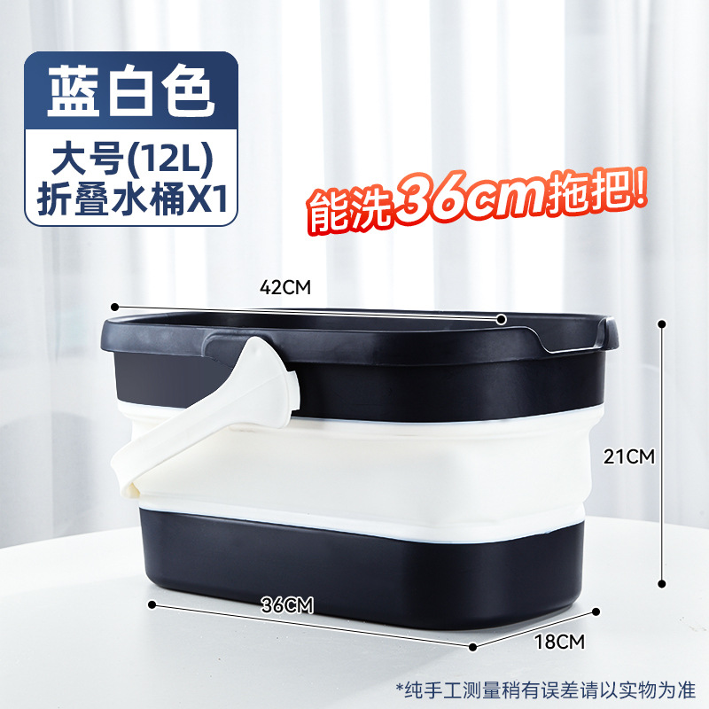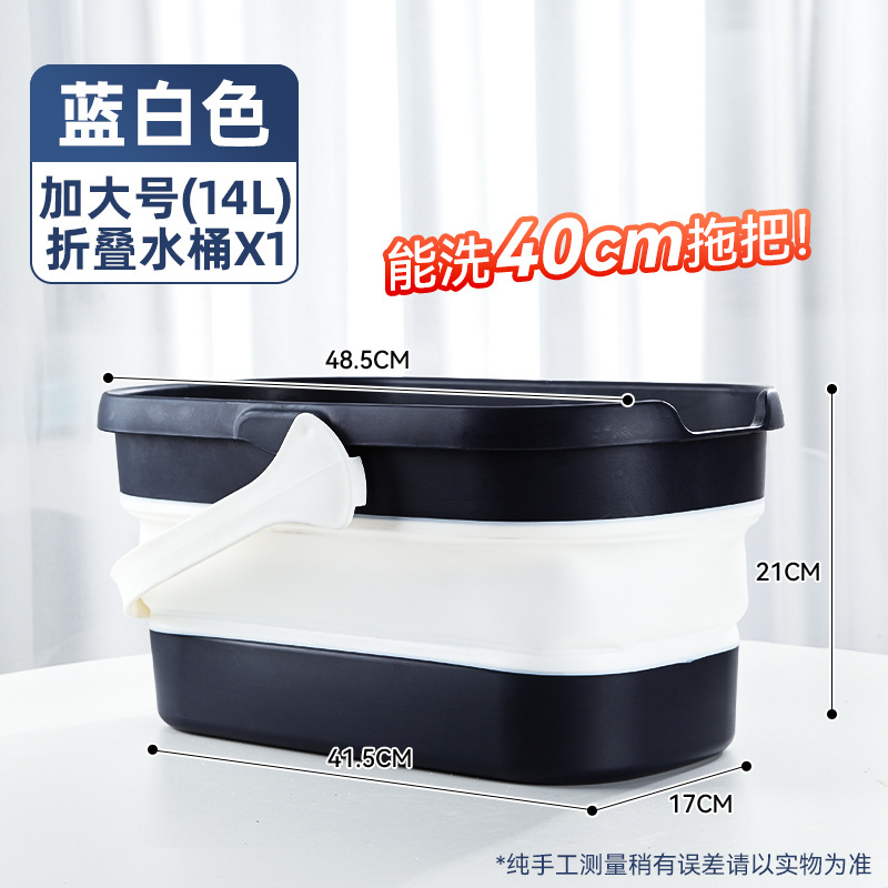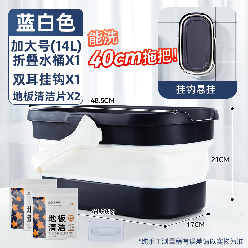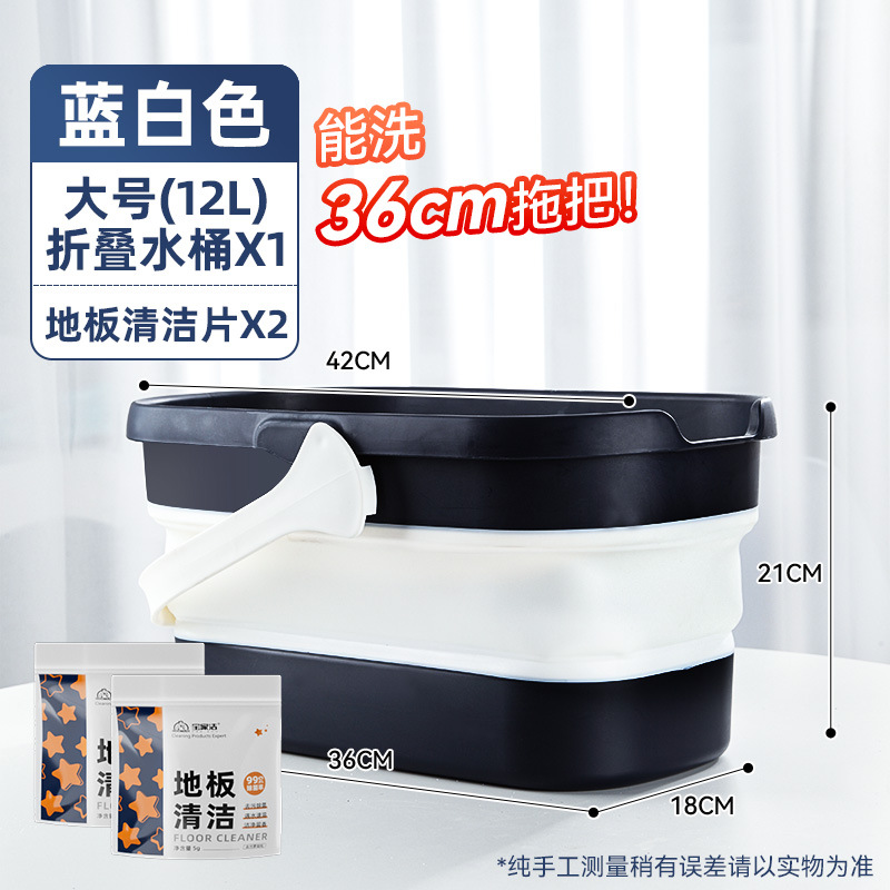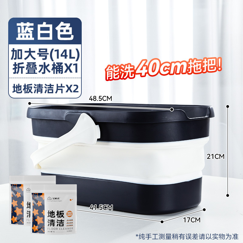 - 容量:【40cm以下拖把用】摺疊水桶-藍白色+地板清潔片