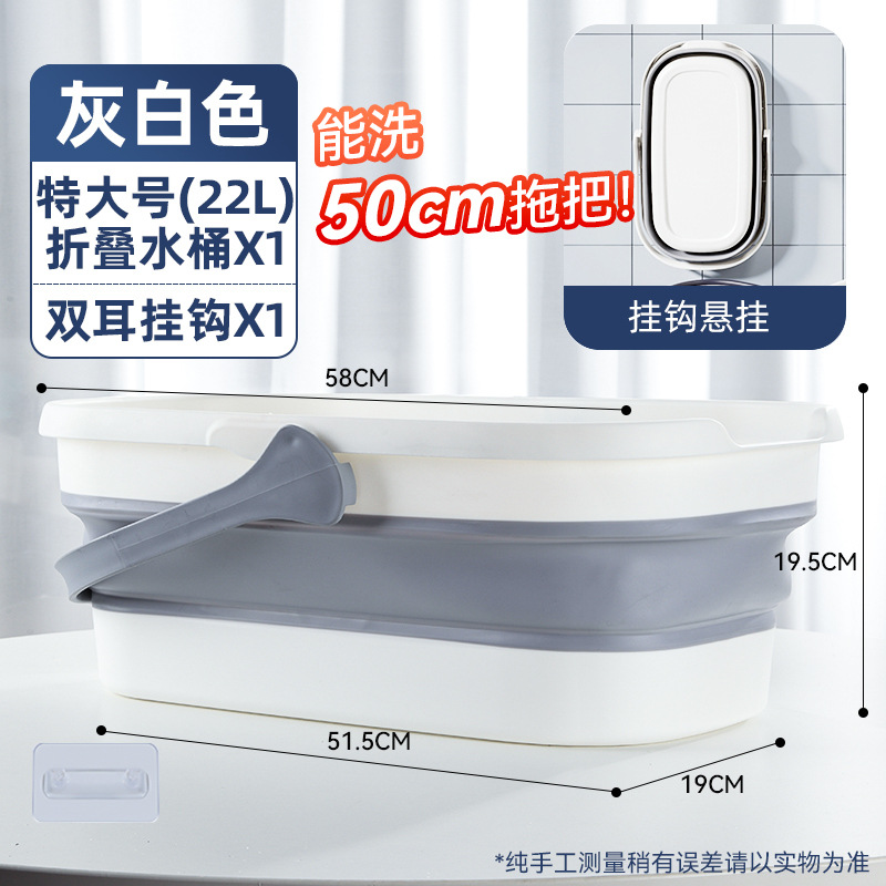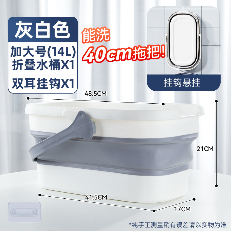 - 容量:【40cm以下拖把用】摺疊水桶-灰白色+掛鈎