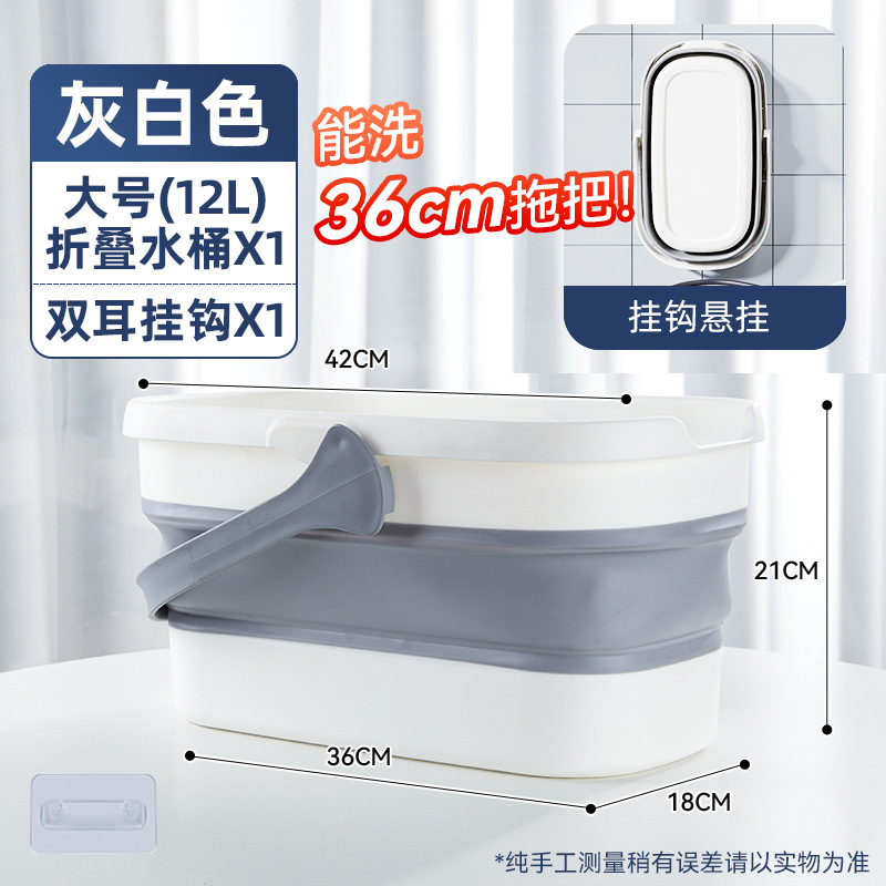 - 容量:【36cm以下拖把用】摺疊水桶-灰白色+掛鈎