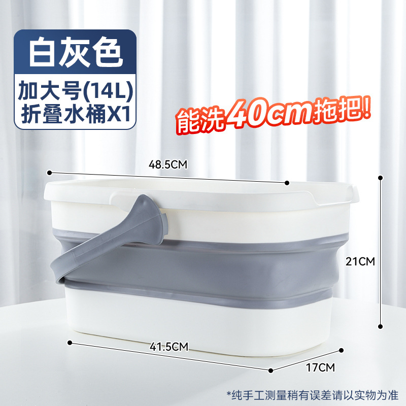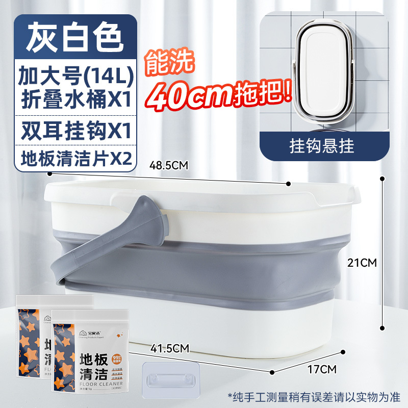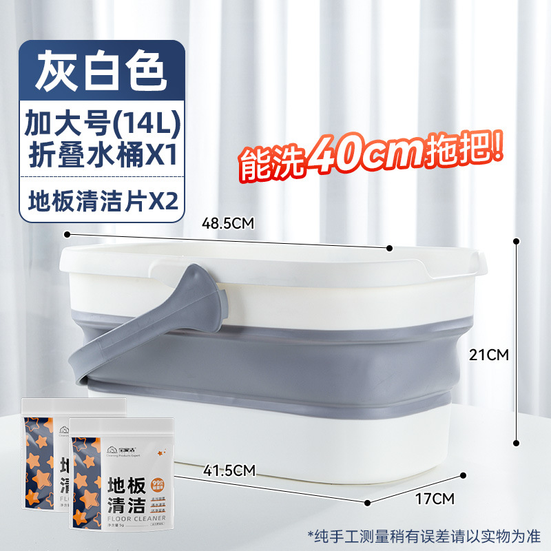 - 容量:【40cm以下拖把用】摺疊水桶-灰白色+地板清潔片