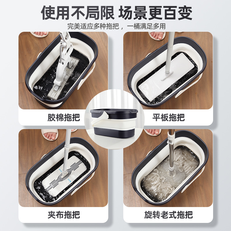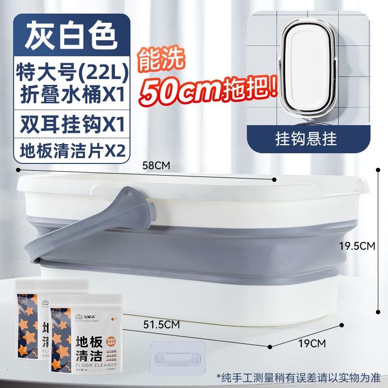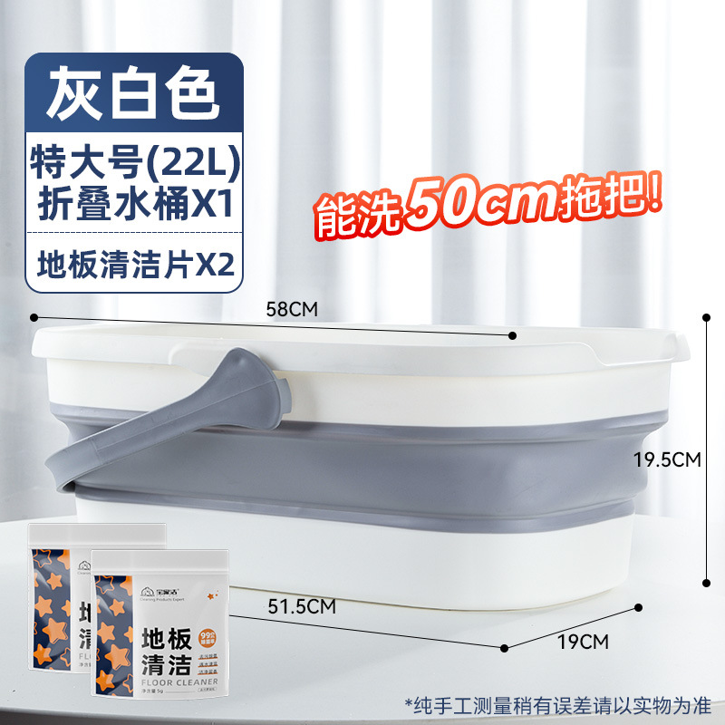 - 容量:【50cm以下拖把用】摺疊水桶-灰白色+地板清潔片
