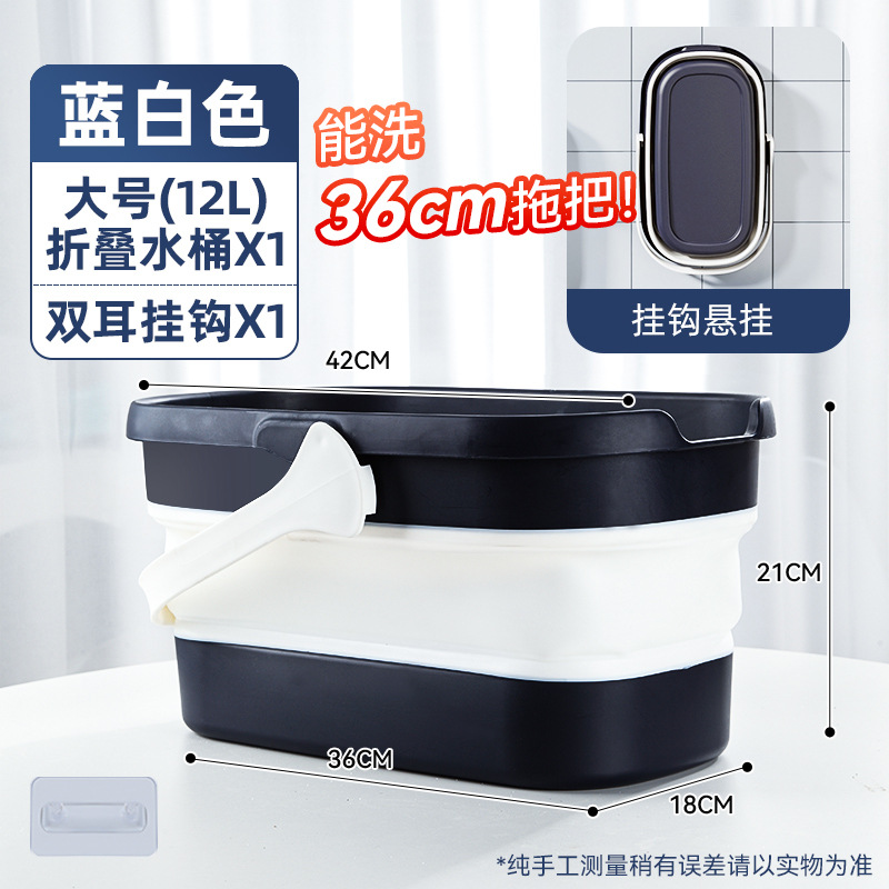 - 容量:【36cm以下拖把用】摺疊水桶-藍白色+掛鈎