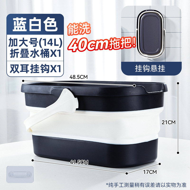 - 容量:【40cm以下拖把用】摺疊水桶-藍白色+掛鈎