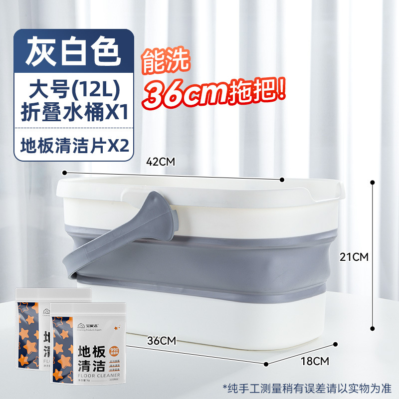 - 容量:【36cm以下拖把用】摺疊水桶-灰白色+地板清潔片