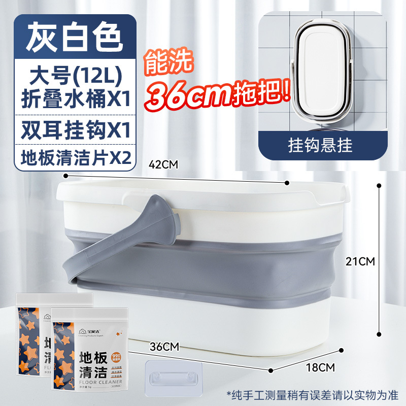 - 容量:【36cm以下拖把用】摺疊水桶-灰白色+掛鈎+地板清潔片