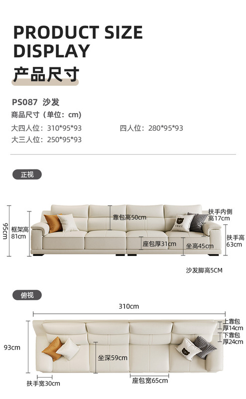 - Model: PS087 Leather Sofa